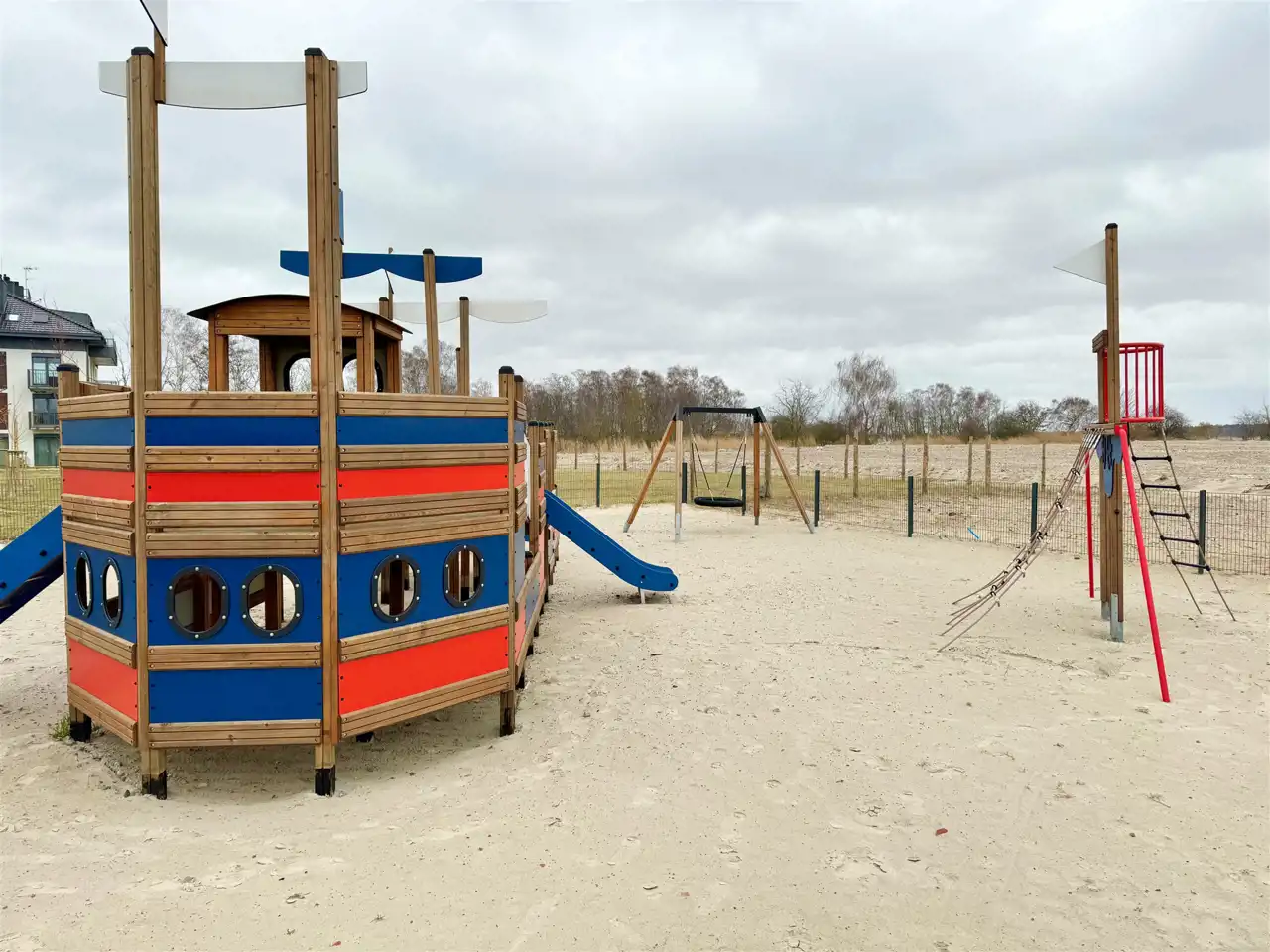 Właściciele apartamentów mogą korzystać z przyległej do budynku plaży Zatoki Wrzosowskiej i placu zabaw. W odległości 500 m znajduję się przepiękna jedna z najszerszych i ciepłych plaż bałtyckich. Dojazd ze Szczecina samochodem to 1,5 h, z lotniska w Goleniowie 1h.