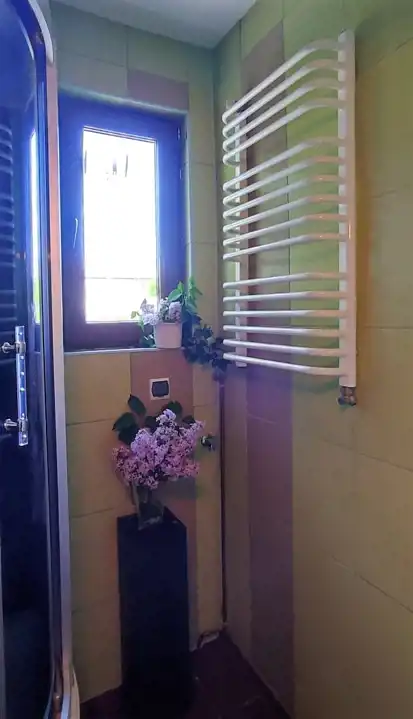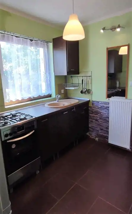 W mieszkaniu i pawilonach okna są PCV. Podłoga w mieszkaniu w pokojach z paneli, pozostałe pomieszczenia w mieszkaniu i pawilonach z terakoty. We wszystkich łazienkach z WC są kabiny natryskowe. Mieszkanie ogrzewane z nowego pieca gazowego dwuobiegowego. W budynku nie ma wspólnoty mieszkaniowej więc nie ma stałych opłat. Wszystkie pomieszczenia posiadają wyposażenie, które może pozostać według osobnych ustaleń.