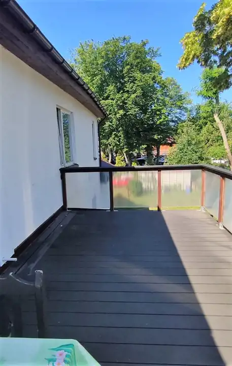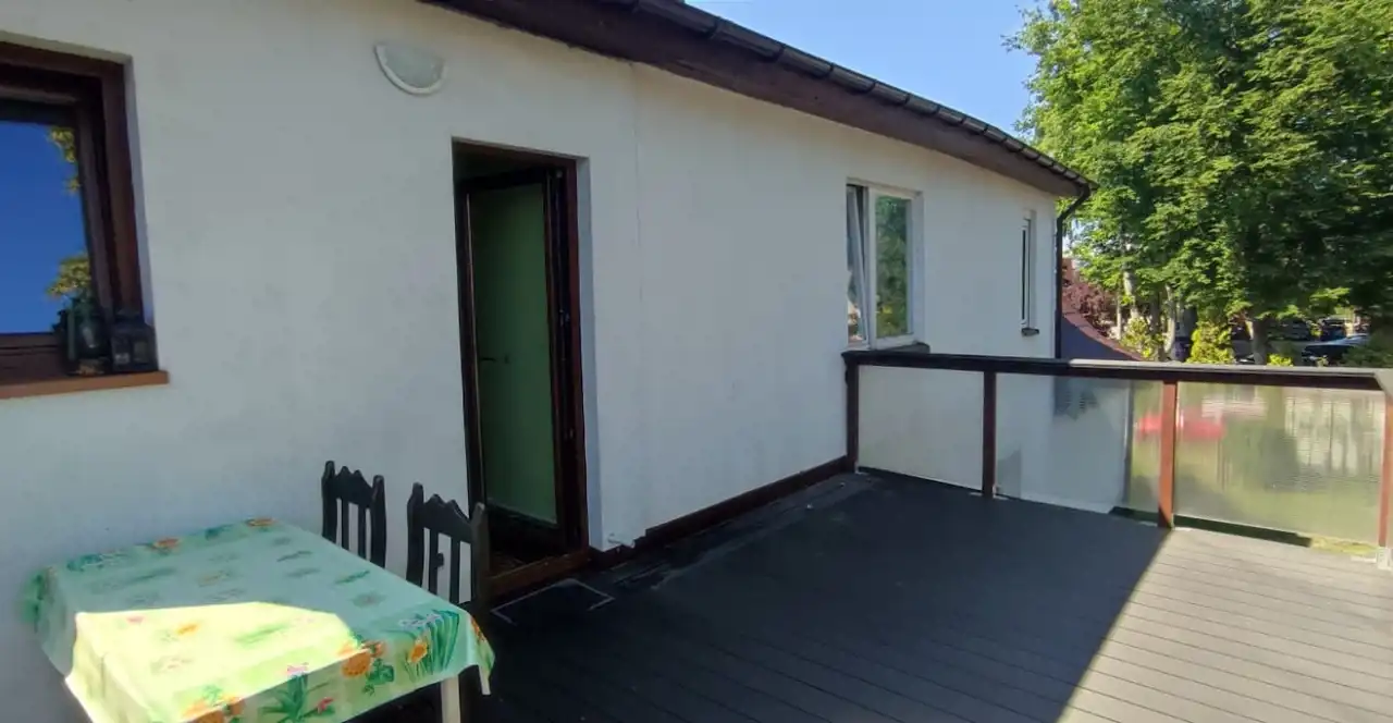 Budynek przedwojenny z cegły, izolowany styropianem z nowym dachem pokrytym blachodachówką z izolację wełną mineralną na działce 1100m2. Odległość w linii prostej od plaży 60m, odległość do wejścia na plażę 180m