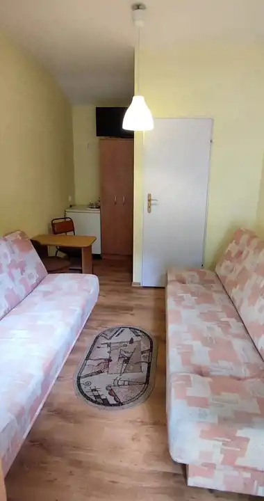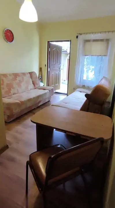 Oferta obejmuje mieszkanie składające się z 3 pokoi 12/16/12m2, kuchni 6m2, 2 łazienek 5/3m2 (z czego jedna jest na parterze), dużego tarasu około 20m2, udział około 33% w działce o powierzchni 1100m2, część pawilonu użytkowego na działce za domem z 3 pokojami z łazienkami na wynajem dla wczasowiczów, prawem użytkowania części działki na zasadach wyłączności na której jest jeszcze pawilon- obiekt nietrwale związany z gruntem gdzie są 2 pokoje i łazienka wspólna na wynajem dla wczasowiczów.