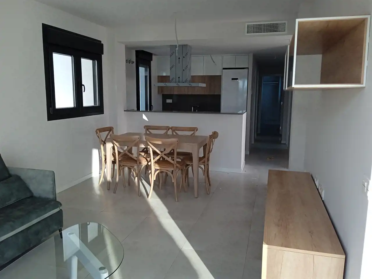 Okna PCV z podwójnymi szybami typu Climalit. Kuchnia z blatem wyposażona w okap, płytę ceramiczną i piekarnik elektryczny. Wewnątrz znajdziemy również szafy wnękowe oraz wstępny montaż klimatyzacji. Do morza 1500m do najbliższej plaży ( Playa de la Almadraba) 2km.