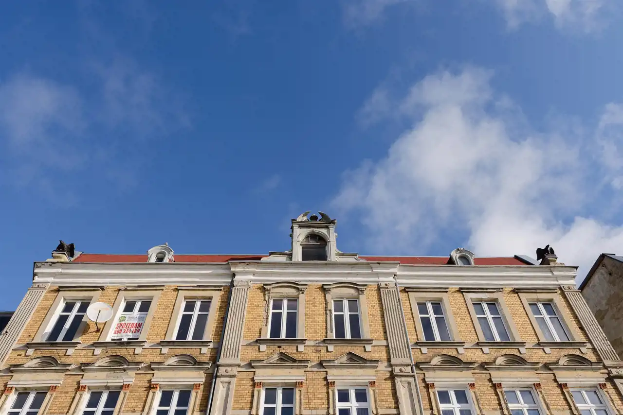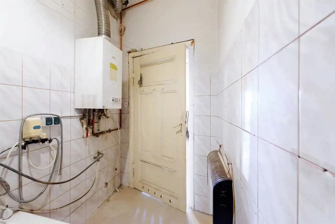 Klatka schodowa czysta i zabezpieczona domofonem, posiada stylowe detale rodem z poprzedniej epoki. Ogrzewanie oraz ciepła woda uzyskiwane są za pomocą piecyka gazowego.