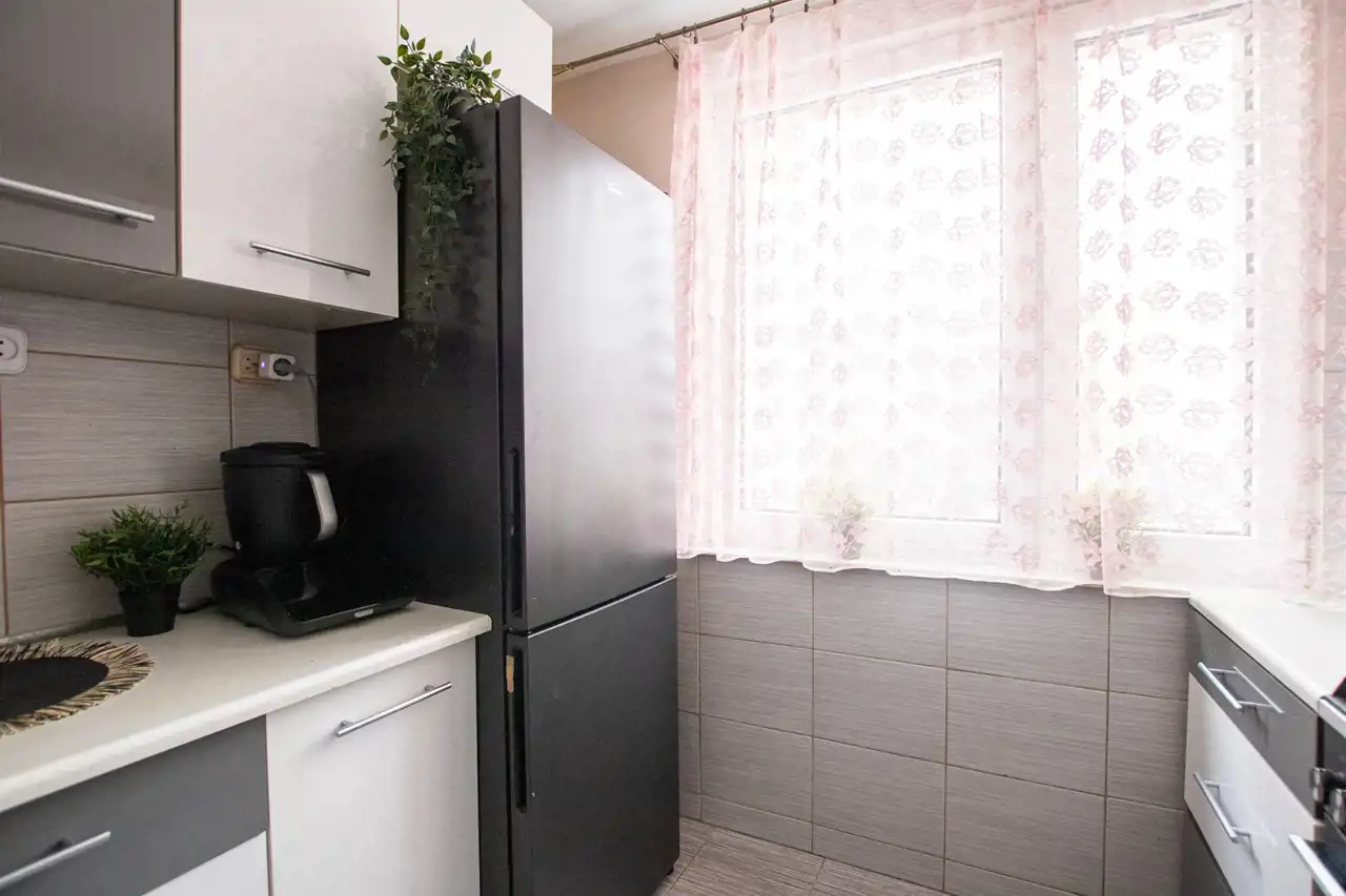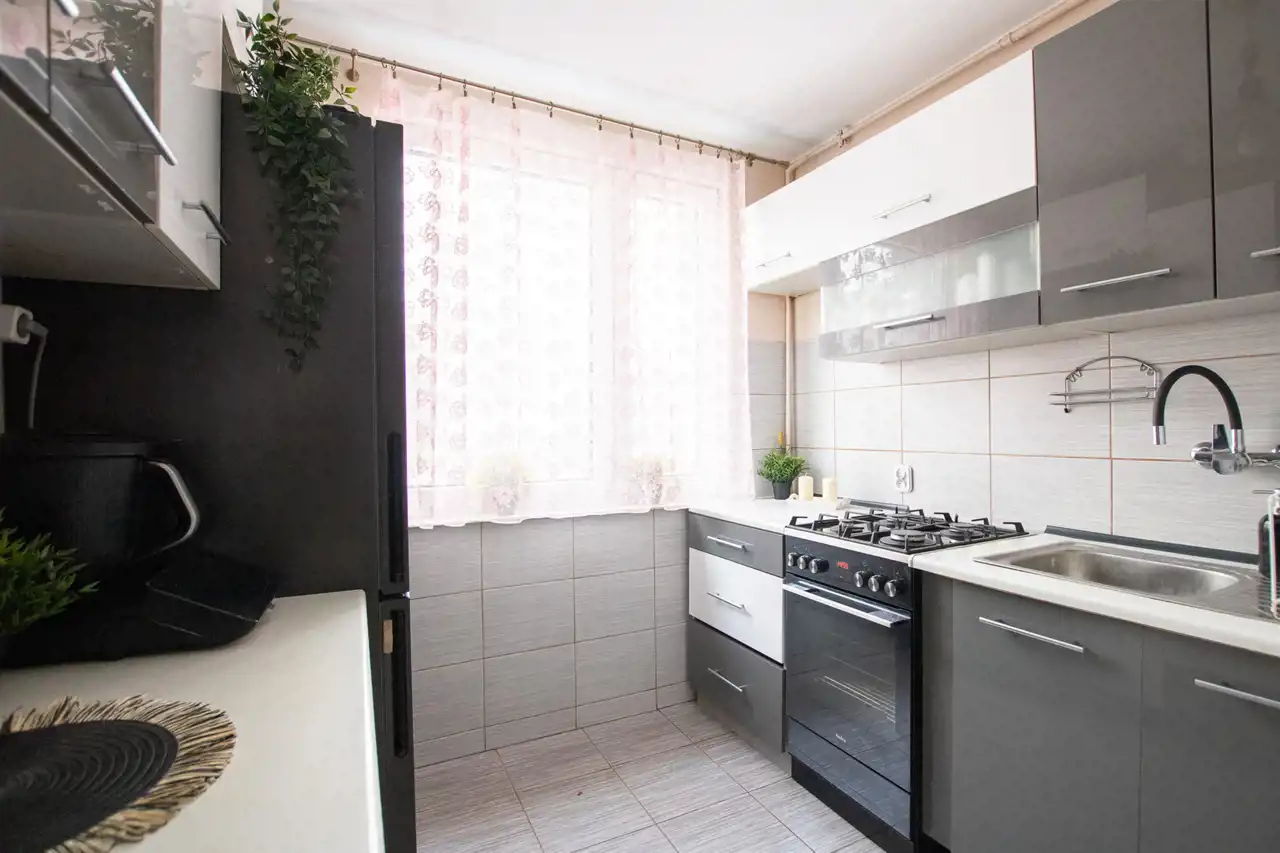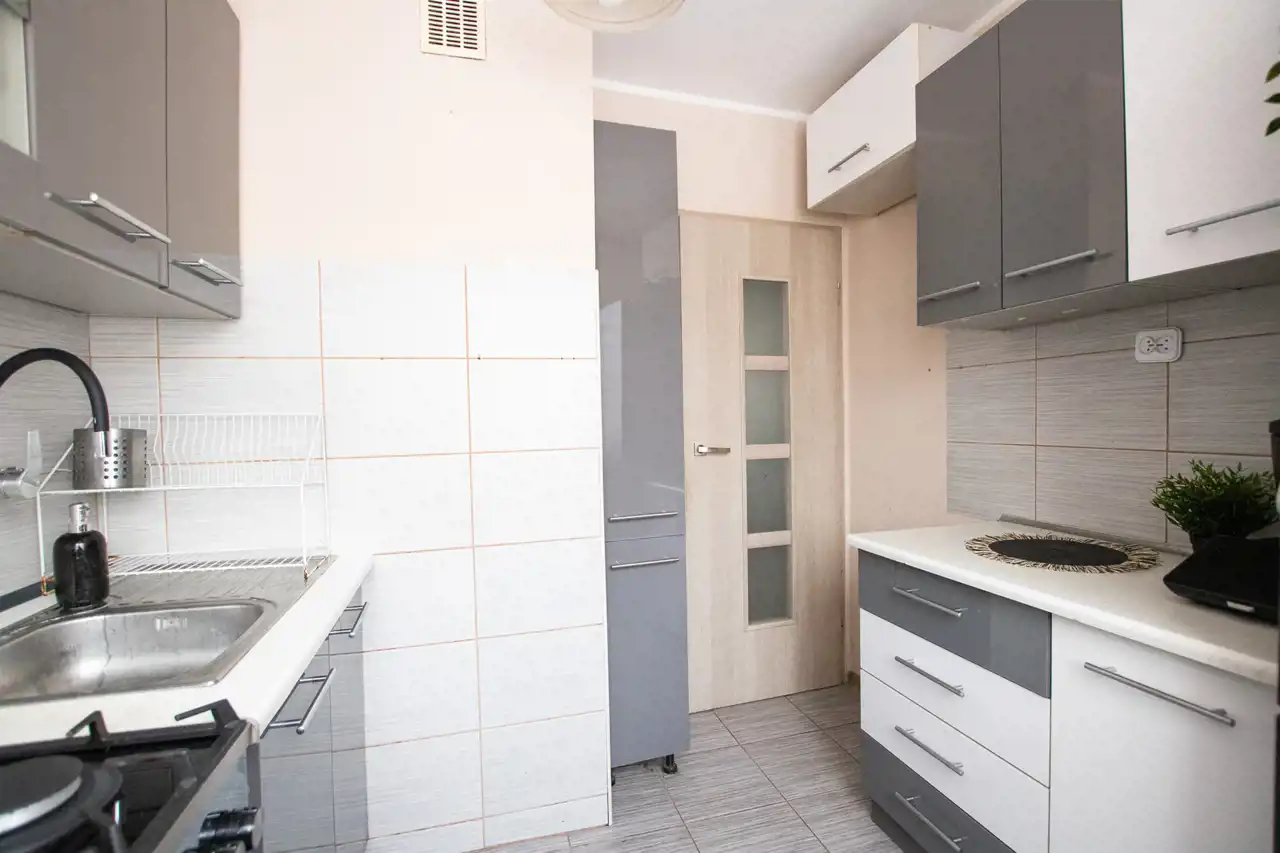 - Kuchnia: Zabudowa meblowa, kuchenka z okapem, zlewozmywak, lodówka