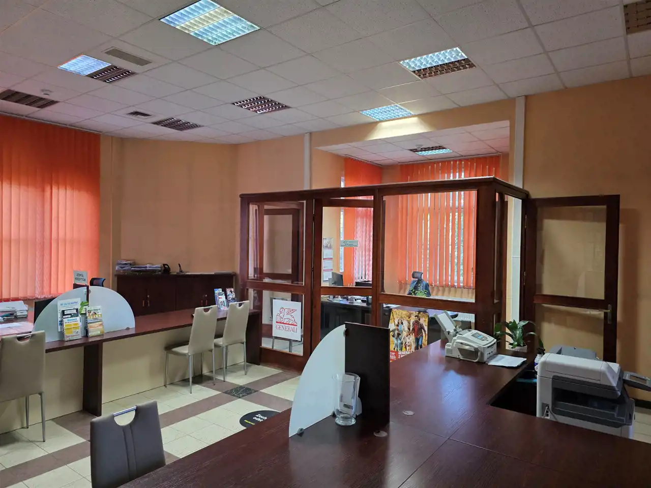 Obiekty zostały wzniesione w technologii murowanej, żelbetowej, konstrukcja dachu drewniana z wykuszami pokryta dachówką ceramiczną. Stolarka okienna drewniana, w części aluminiowa. Poszczególne pomieszczenia zostały urządzone zgodnie z pełnioną funkcją. Główną częścią budynku jest przestronna sala sprzedaży o powierzchni 174m2 położona na parterze. Z kolei na 2 piętrze znajduje się urządzona sala konferencyjna o powierzchni 63m2 wraz z zapleczem służącym do jej obsługi. Spośród wielu pomieszczeń biurowych i socjalnych położonych na poszczególnych kondygnacjach na uwagę zasługują funkcjonalnie urządzone pomieszczenia piwnicy, gdzie znajdują się pomieszczenia socjalno-biurowe, techniczne, magazynowe oraz pomieszczenia archiwum.