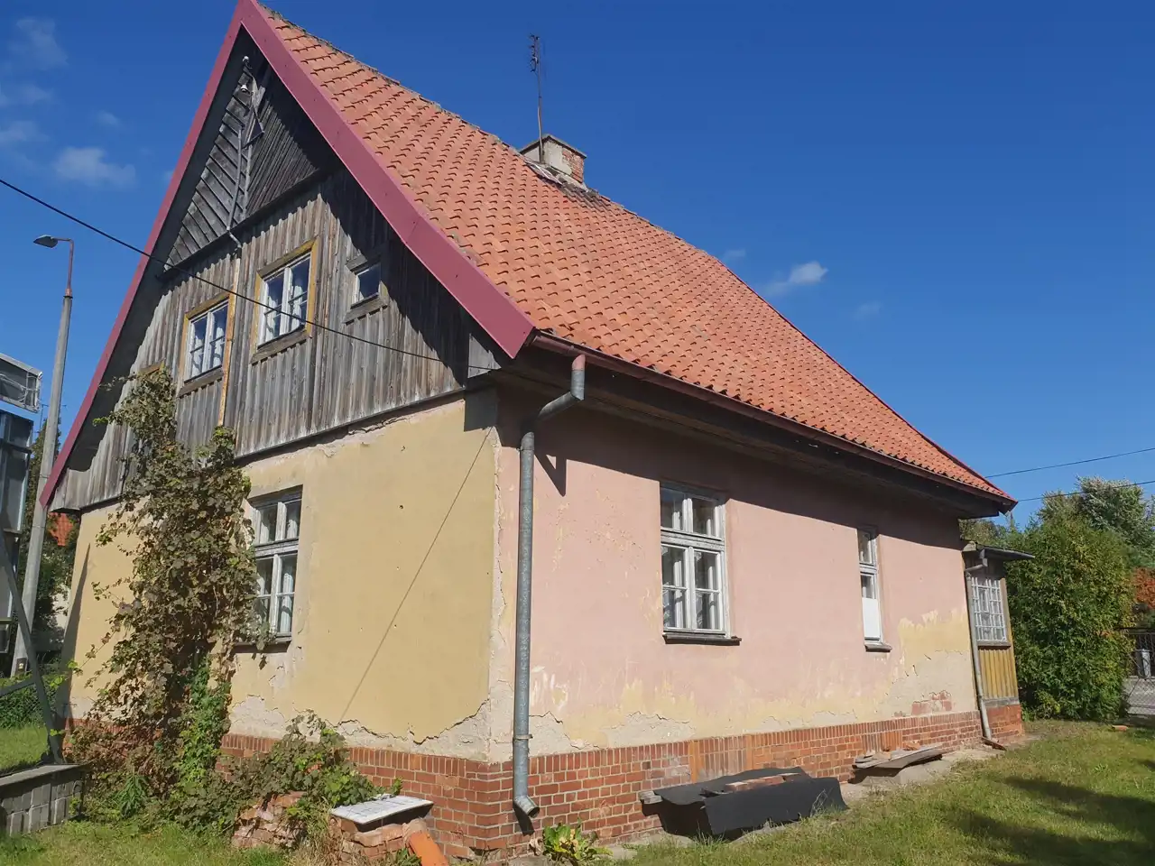 Ten przedwojenny dom o powierzchni użytkowej 104 m² wymaga remontu, ale właśnie to daje Ci szansę na stworzenie unikalnego wnętrza, które łączy w sobie historyczny urok z nowoczesnym stylem. Budynek, zbudowany z solidnej cegły, jest w dobrym stanie technicznym, a jego dach, pokryty dachówką, oraz krokwie są w bardzo dobrym stanie.