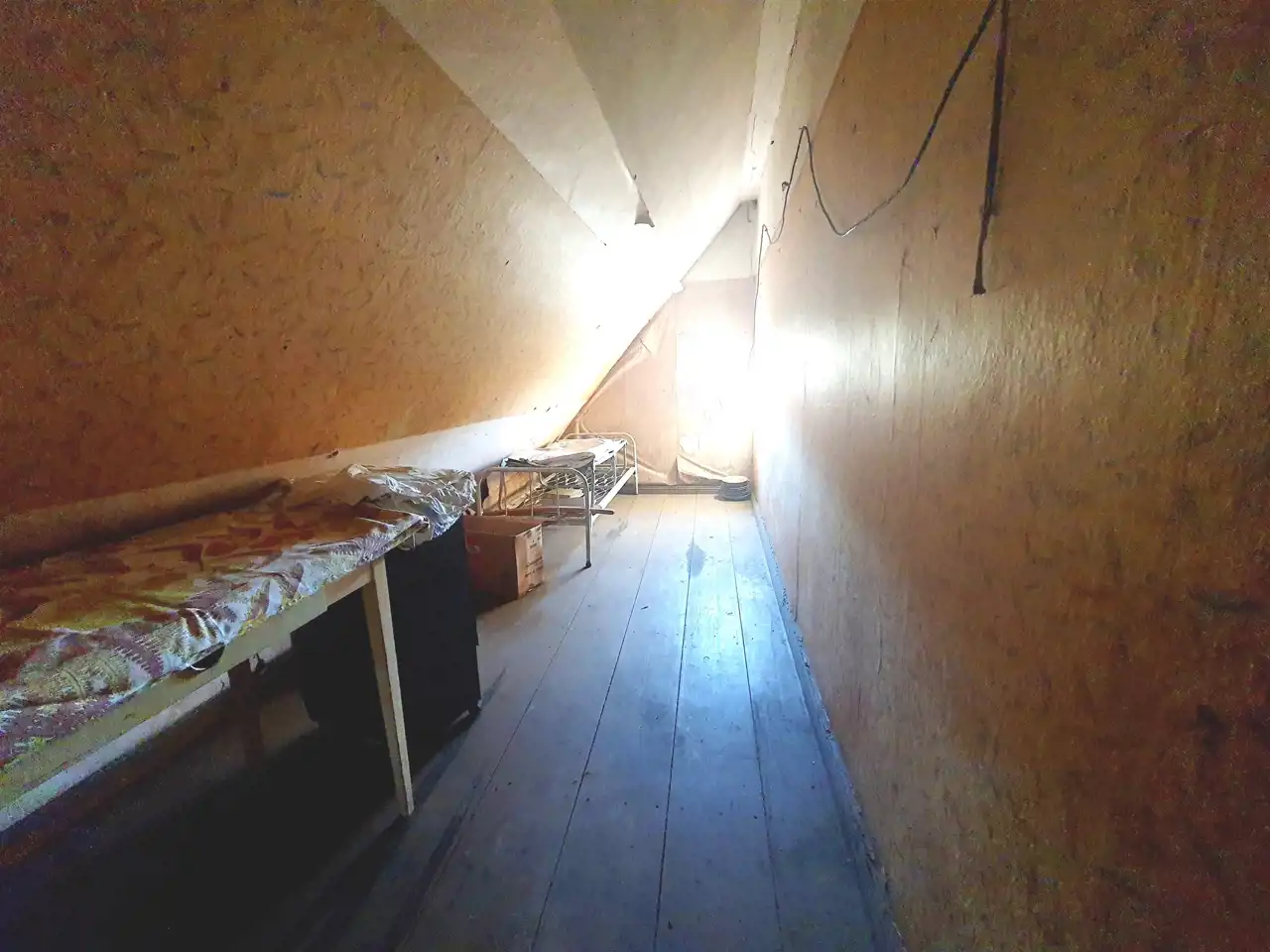 Piętro (ok. 37 m²): Składa się z dwóch dużych sypialni (19 m² i 17 m²). Dodatkowe dwa pomieszczenia ze skosami możesz zaadaptować na praktyczną garderobę, przytulne biuro lub pokój dla dziecka. Na podłogach również położono drewniane deski.