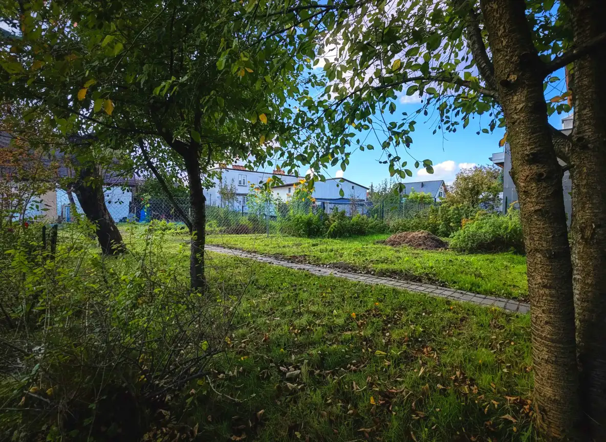 - Działka częściowo zagospodarowana, prostokąt