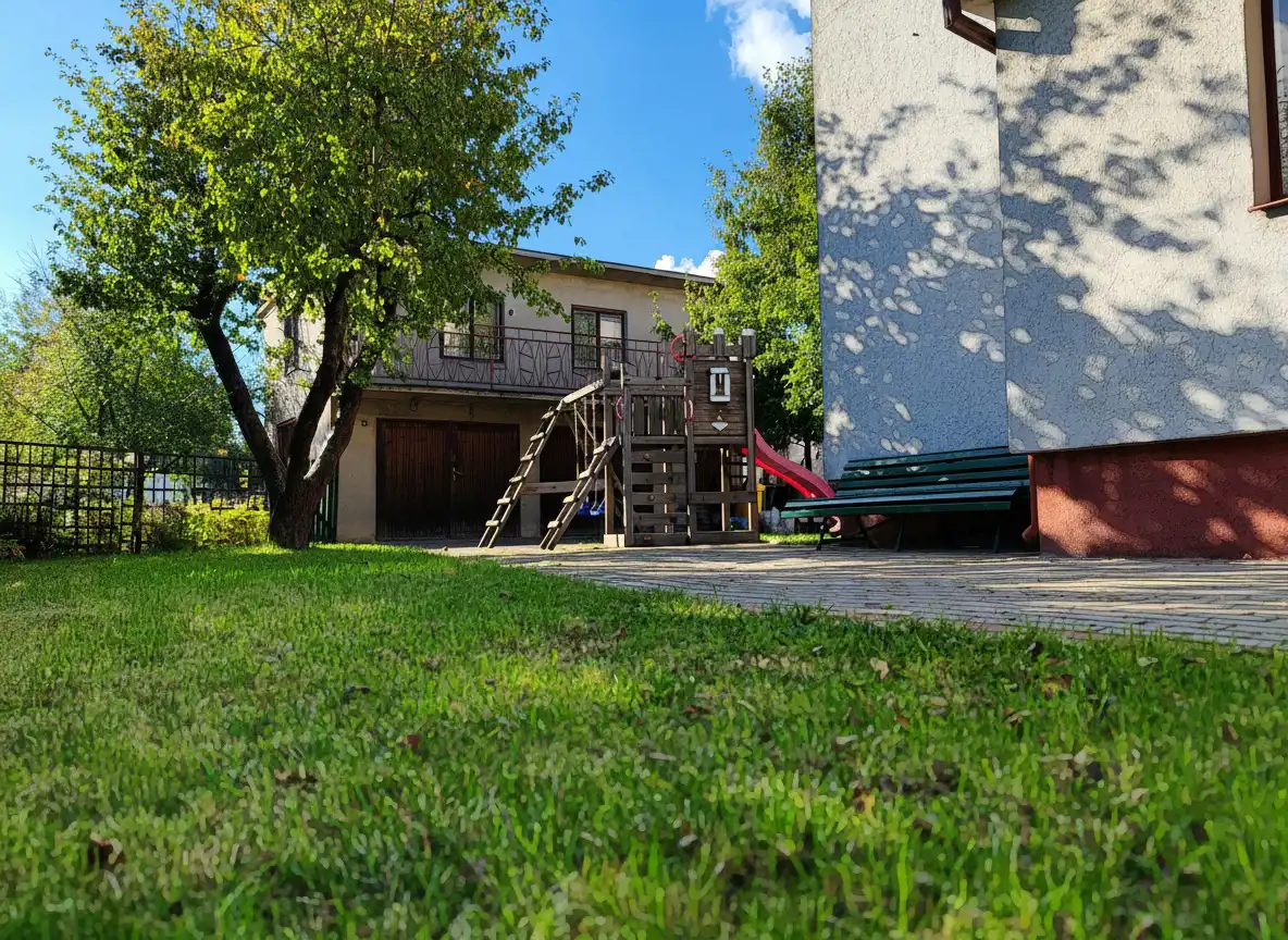 Dodatkowym atutem jest duża działka o powierzchni 512 m², która daje wiele możliwości aranżacyjnych. Piwnica oraz budynek gospodarczy zapewniają dodatkową przestrzeń do przechowywania lub adaptacji według własnych potrzeb. Na piętrze budynku gospodarczego można stworzyć niewielkie mieszkanie lub pracownię.