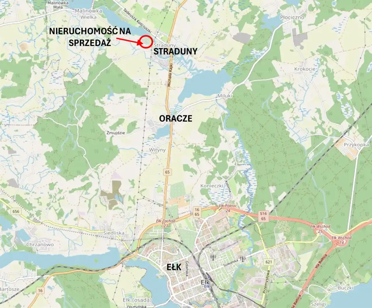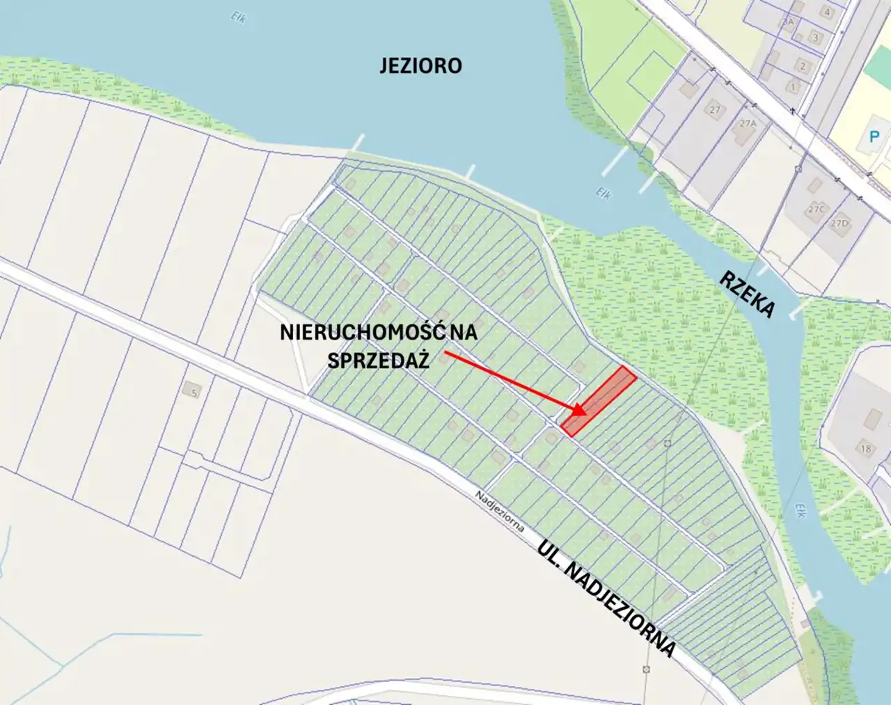 Nieruchomość składa się z dwóch działek o łącznej powierzchni 0,1027 ha, położonych w pierwszej linii od zatoki jeziora Straduńskiego i rzeki Ełk. Teren działek ogrodzony i zagospodarowany.