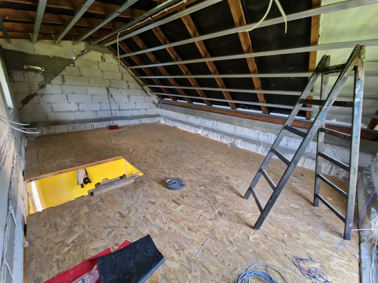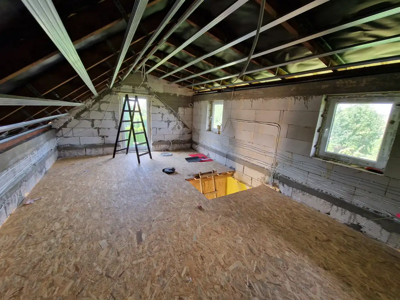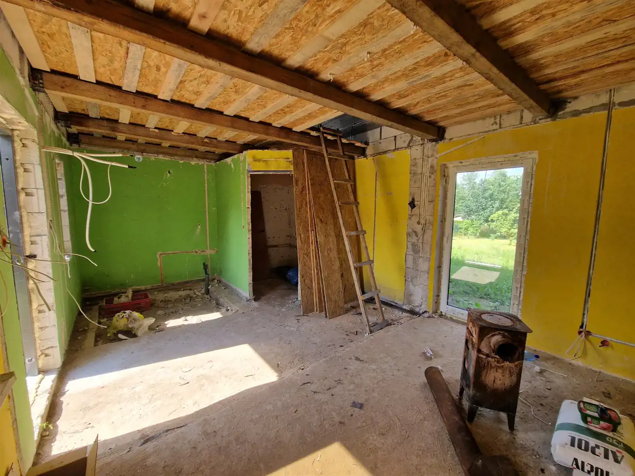 W budynku na parterze zlokalizowany jest: salon z kuchnią, oraz łazienka z wc. Natomiast na poddaszu wolna przestrzeń sypialniana.