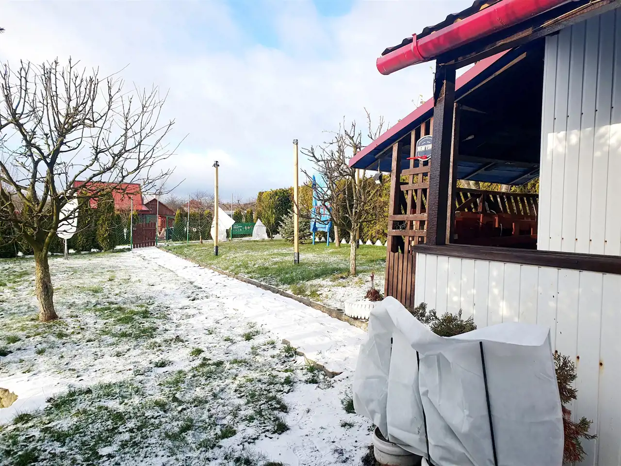 Domek letniskowy: Drewniany z poddaszem o powierzchni 20 m², z uroczą werandą.