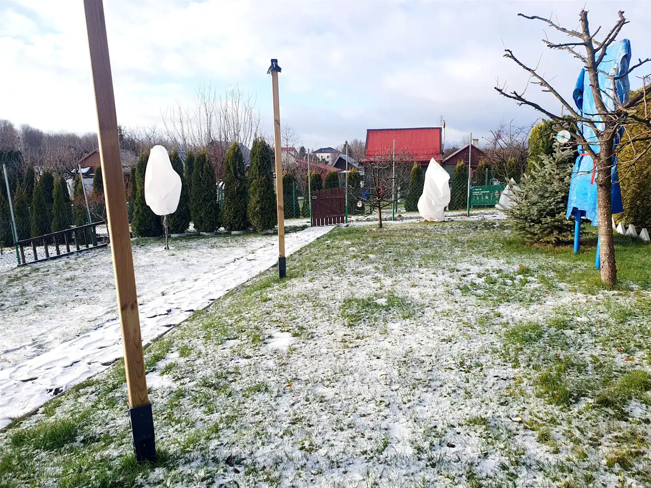 Działka oddzielona od sąsiada nasadzeniami tui, co zapewnia prywatność.