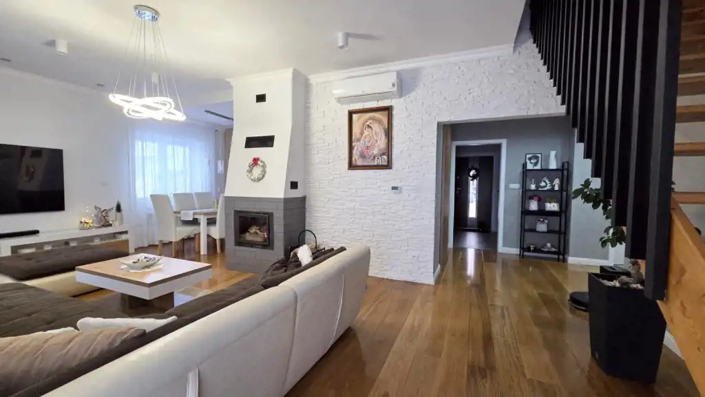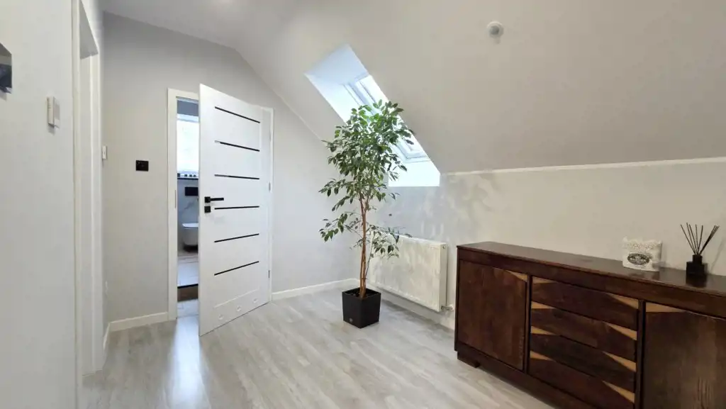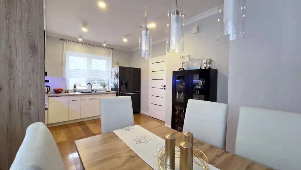 Dom parterowy z poddaszem użytkowym, wybudowany w 2011 roku z dbałością o detale. Przemyślany układ zapewnia wygodę, a jednocześnie buduje ciepły, rodzinny klimat.