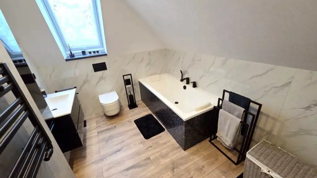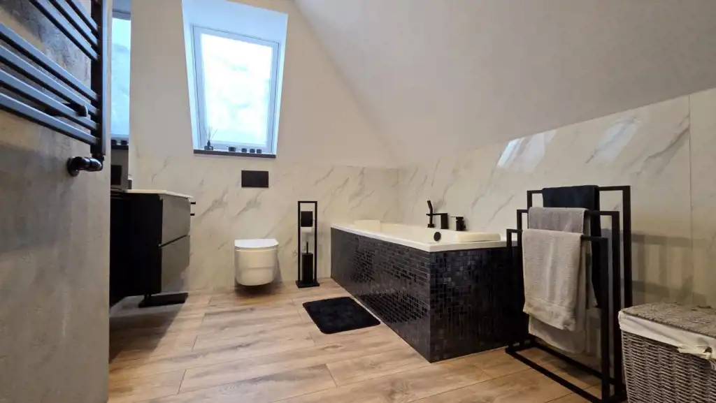 łazienka z oknem (wanna, umywalka, WC)