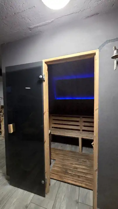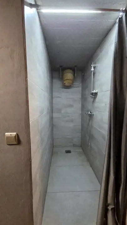 prysznic oraz podwieszana beczka na lodowatą wodę,