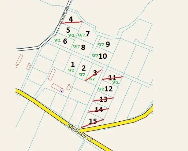- Media Woda: w ulicy; Kanalizacja: w pobliżu; Prąd: w ulicy; Gaz: brak