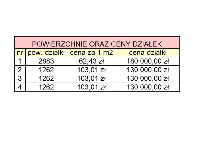Szczegółowa tabela cen i powierzchni oraz plan podziału dostępne są w załączonych materiałach graficznych.
