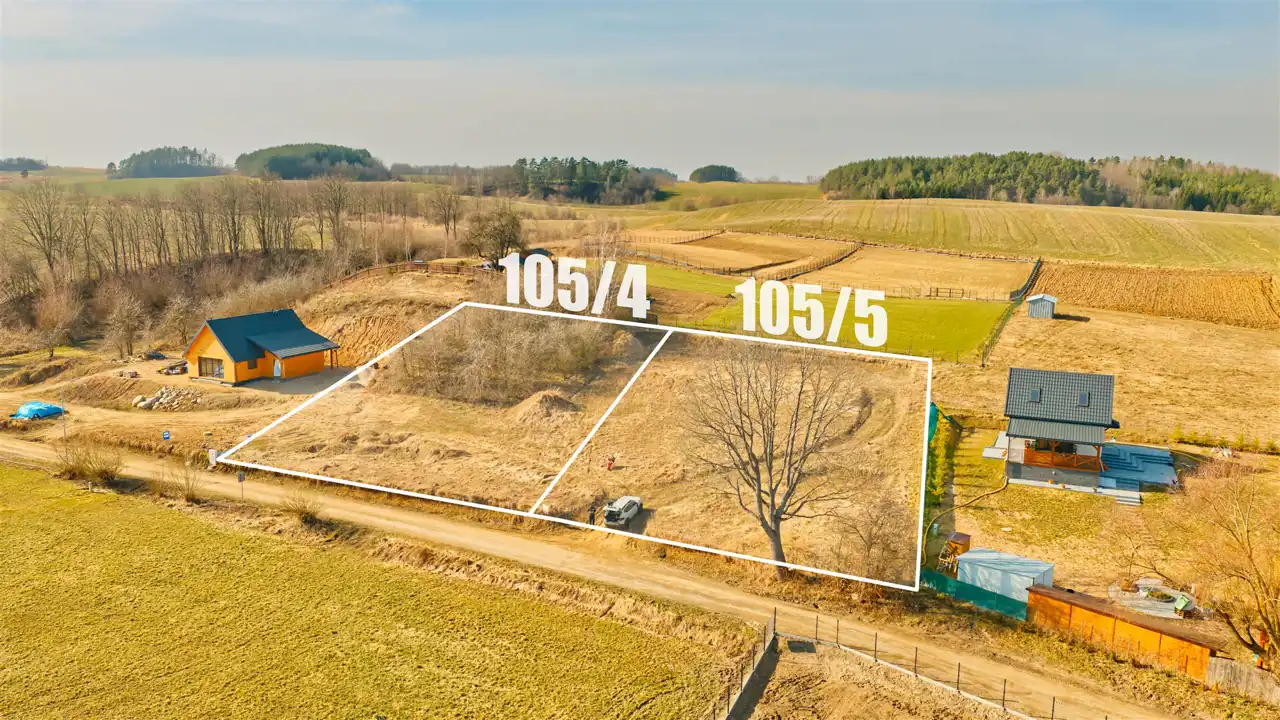 Dostępne są działki o numerach 105/4 o powierzchni 1501 m² oraz 105/5 o powierzchni 1502 m². Obie działki posiadają bezpośredni dostęp do drogi publicznej (dz. nr 119), co zapewnia komfortowy i całoroczny dojazd.