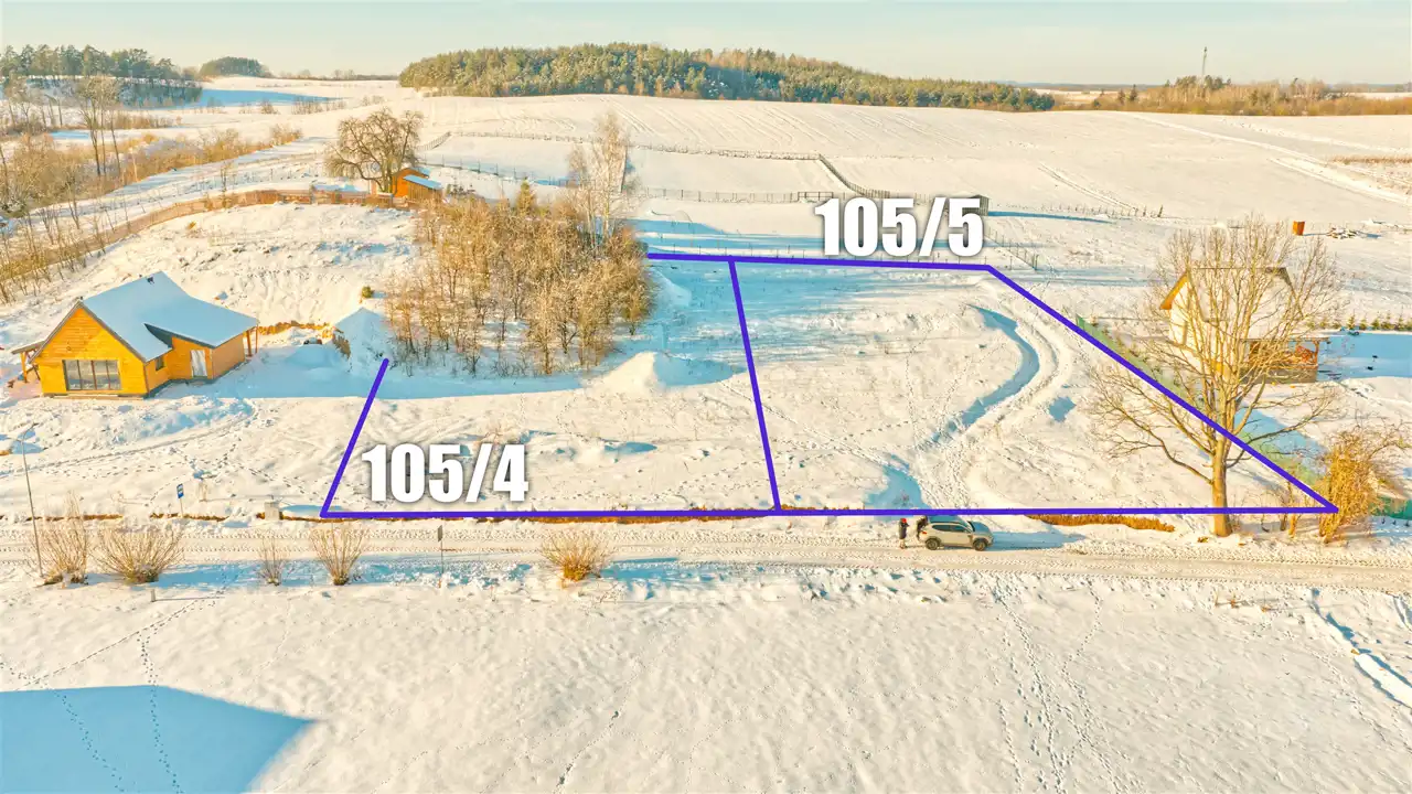 Dostępne są działki o numerach 105/4 o powierzchni 1501 m² oraz 105/5 o powierzchni 1502 m². Obie działki posiadają bezpośredni dostęp do drogi publicznej (dz. nr 119), co zapewnia komfortowy i całoroczny dojazd.