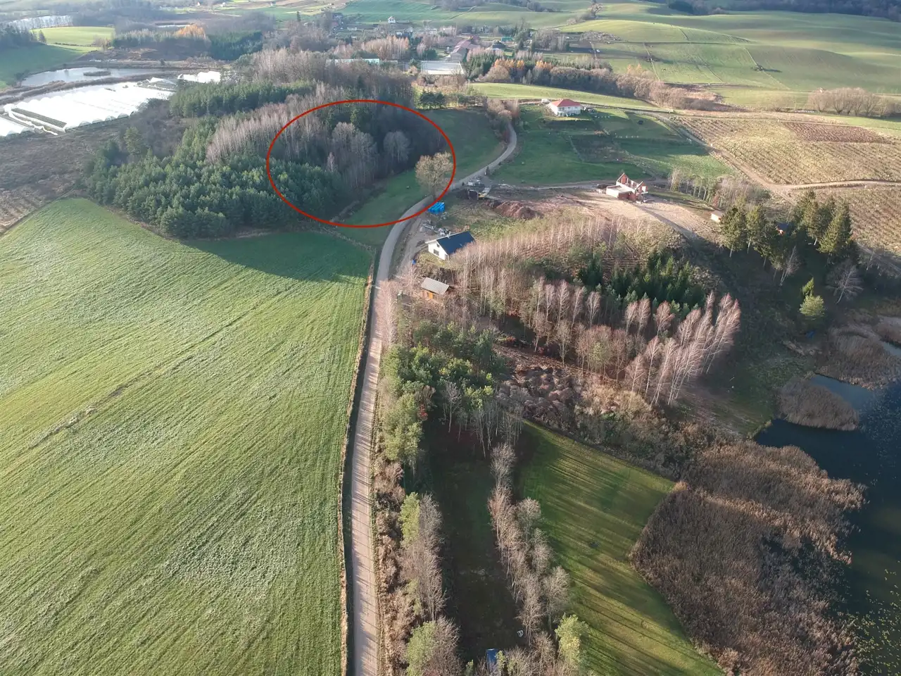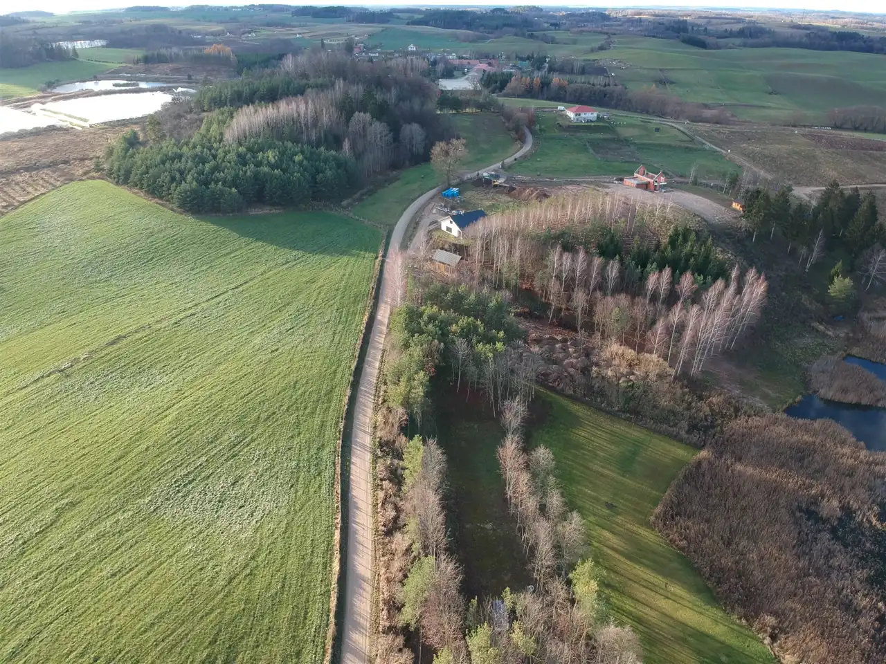Łatwy dostęp: Do każdej z działek prowadzi dobrze utwardzona droga gminna, zapewniając wygodny dojazd z dwóch stron.