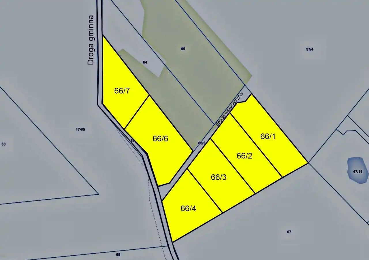 - działka 66/4 o powierzchni 3287m2 w cenie 130 000 zł;
