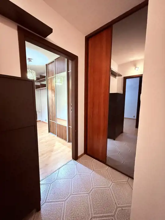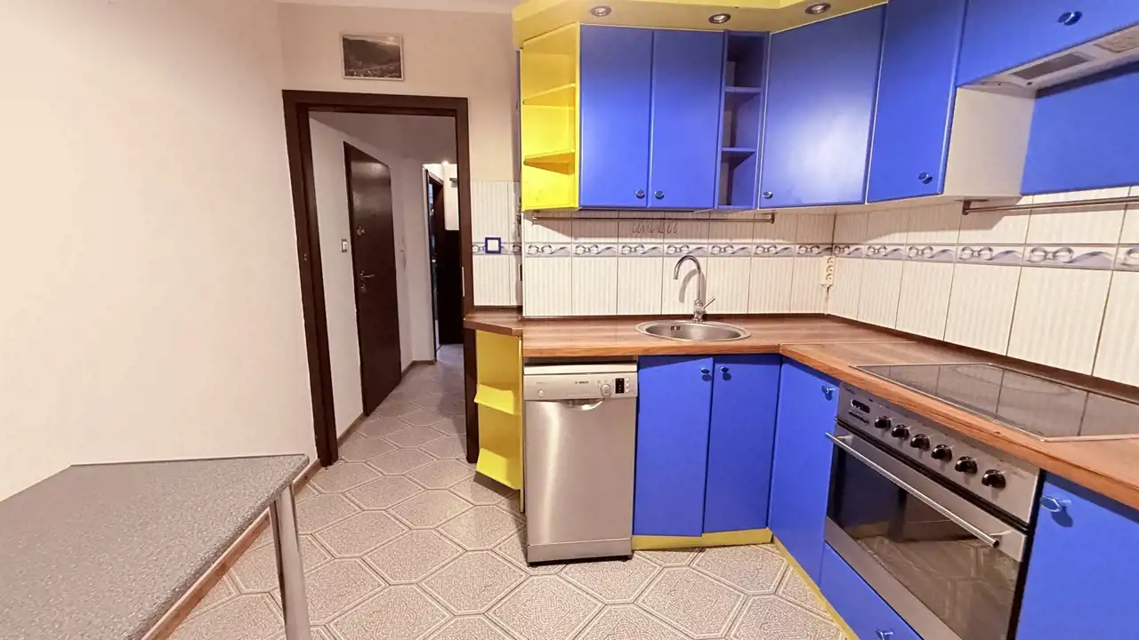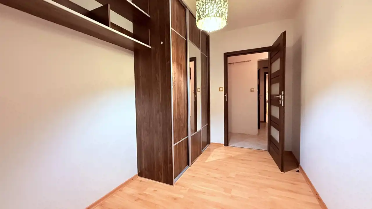 W lokalu pozostają zabudowy stałe, w tym meble kuchenne z kuchenką elektryczną, zmywarką i lodówką, a także praktyczne szafy w pokojach i przedpokoju.