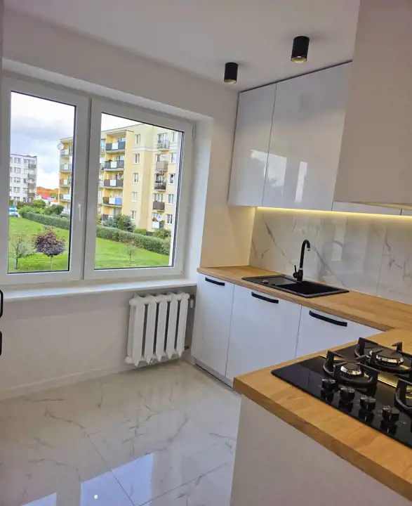 Lokal po generalnym remoncie, dostępny od zaraz. Salon z wyjściem na balkon. 2 sypialnie. Łazienka z prysznicem, oddzielne wc. Kuchnia w stałej zabudowie z pełnym wyposażenia (lodówka, zmywarka, pralka, kuchenka, okap). Wysoki standard.