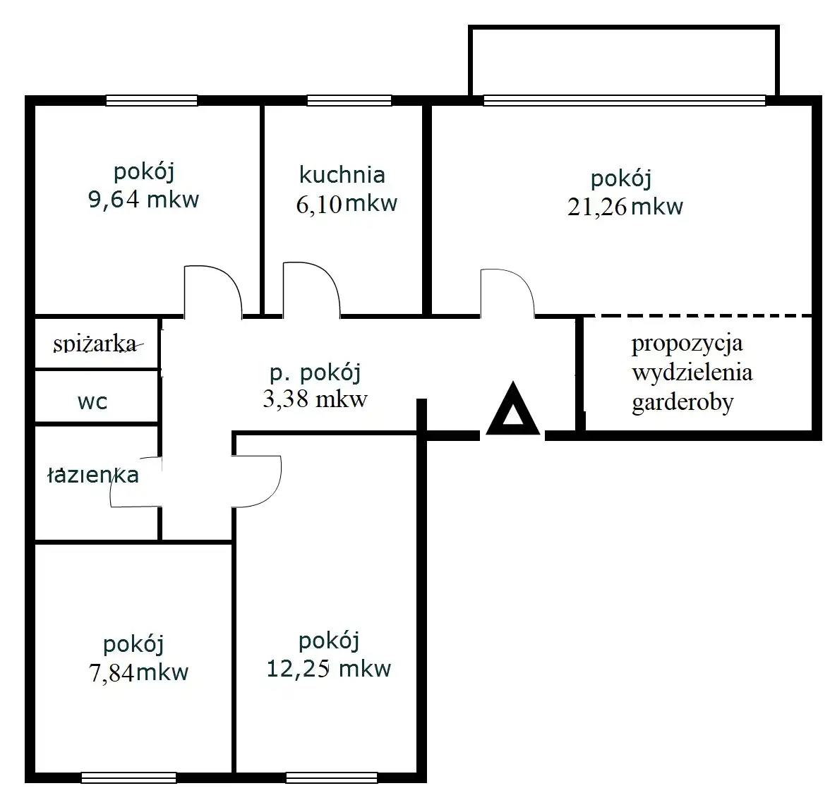 przestronny salon z wyjściem na balkon oraz wnęką, którą można wykorzystać na garderobę z wejściem z przedpokoju,