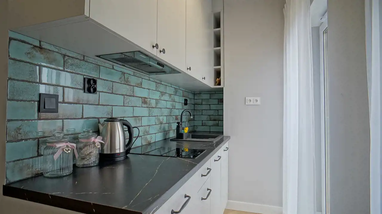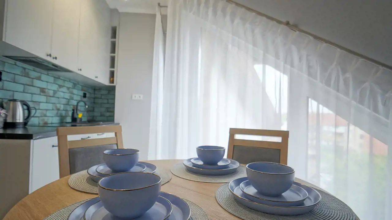 Nowy, 45m2 powierzchni użytkowej (62m2 po podłodze), umeblowany apartament przy samym jeziorze, w nowym pięknym bloku w kształcie żagla.