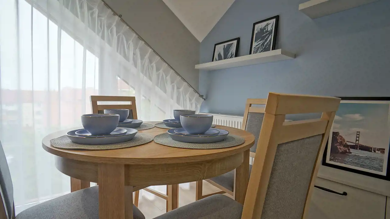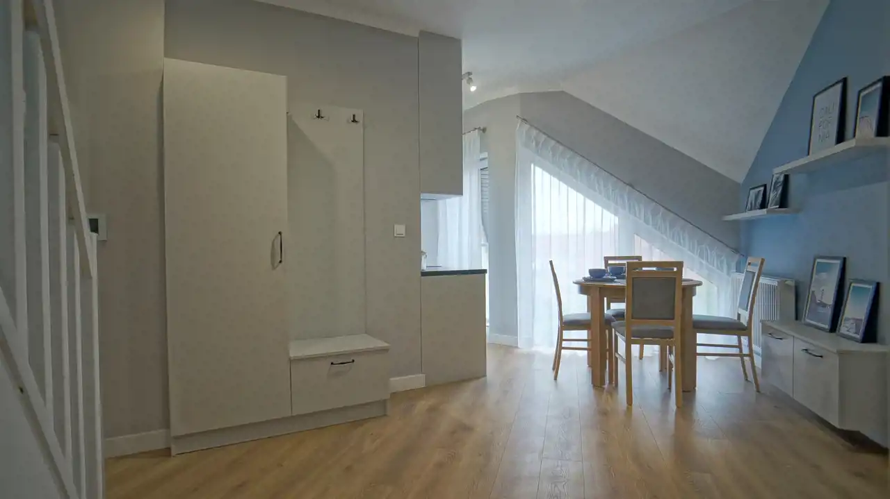 Nieruchomość znajduje się na trzecim i czwartym piętrze nowego budynku z windą. Składa się z trzech pokoi, z czego jadania z kuchnią oraz sypialnia znajdują się na pierwszym poziomie a pokój dzienny na drugim. Mieszkanie jasne, widne, świeże, nieużywane, przygotowane do wprowadzenia lub wynajmowania.