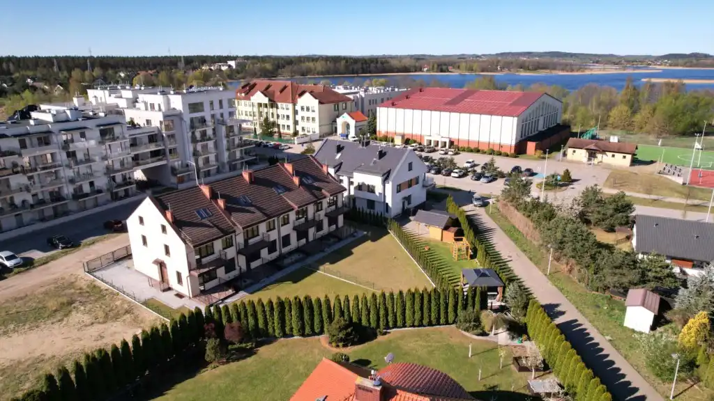 To świetna lokalizacja dla osób, które cenią bliskość jeziora, terenów spacerowych i rekreacyjnych, a jednocześnie chcą mieć szybki dostęp do miejskiej infrastruktury. W okolicy znajdują się m.in. szkoła, hala sportowa, kościół, laboratorium, punkty usługowe oraz inne udogodnienia potrzebne na co dzień.