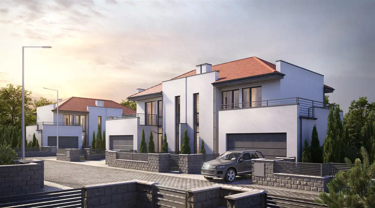 Powierzchnie oferowanych lokali mieszkalnych wynoszą 140,36 m², a każdy z nich posiada dwustanowiskowy garaż w bryle budynku.
