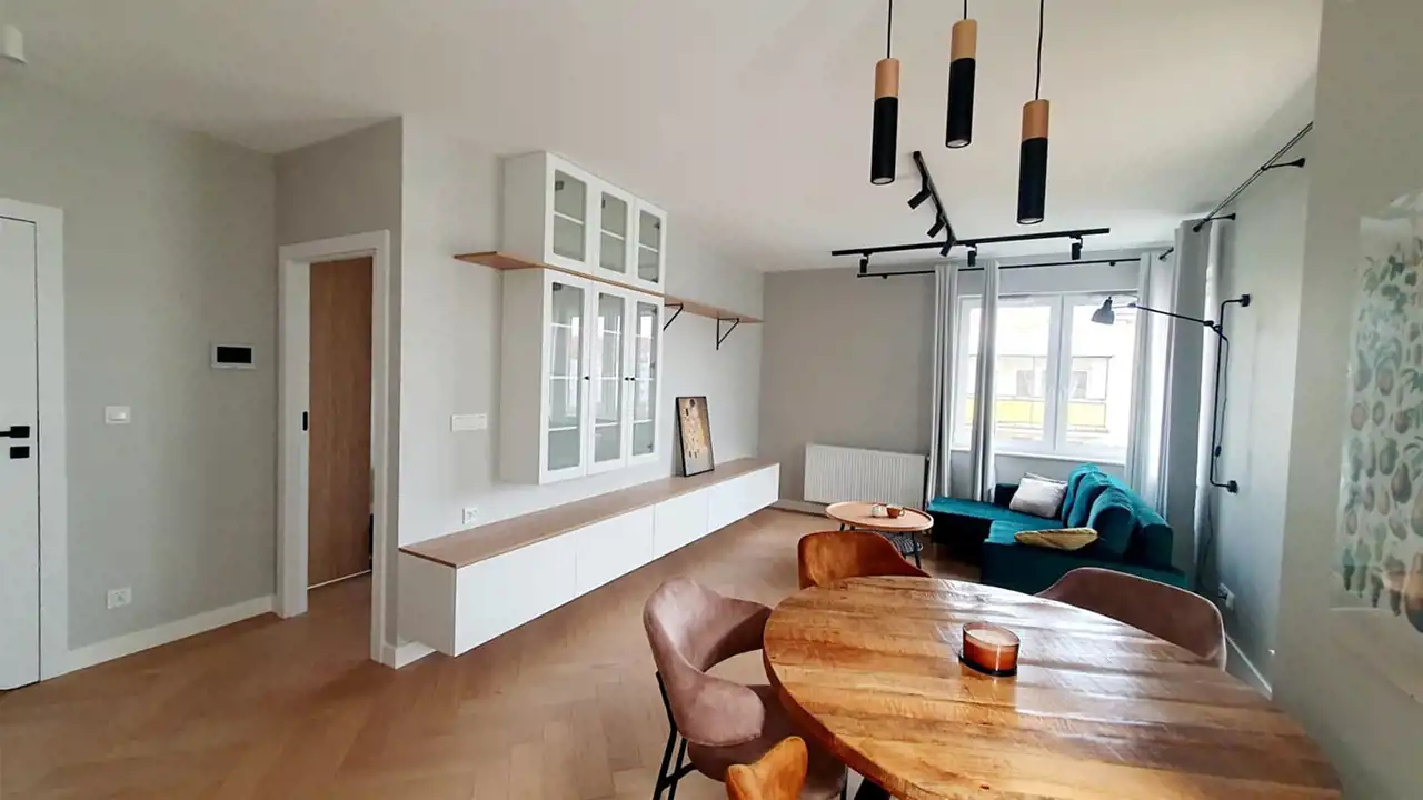 Standard: Mieszkanie wykończone w wysokim standardzie, w jasnej, nowoczesnej kolorystyce.