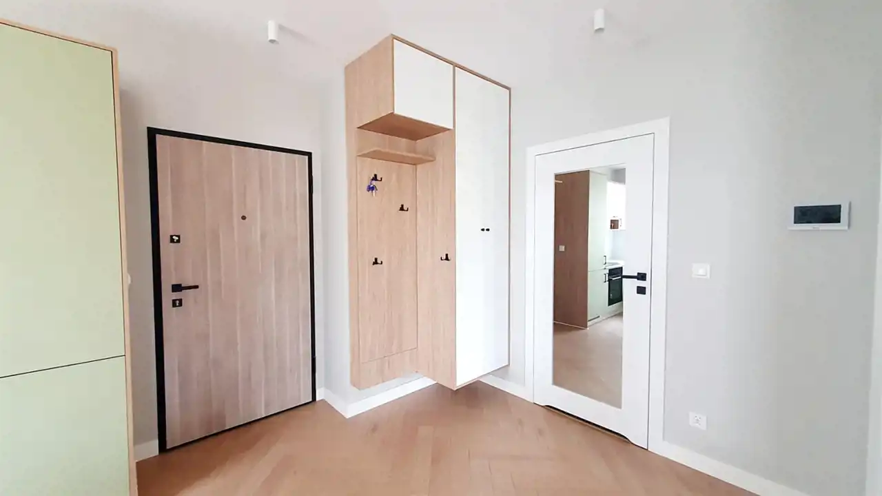 Przedpokój: przestronny z szafą dwudrzwiową, zapewniający wygodną komunikację.