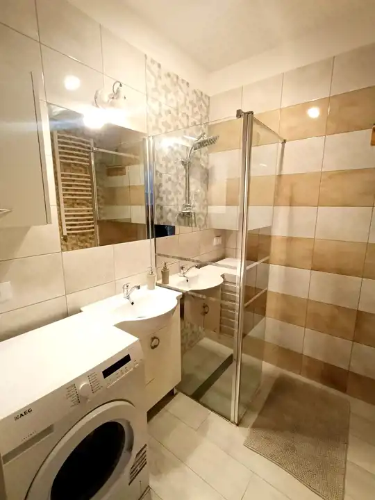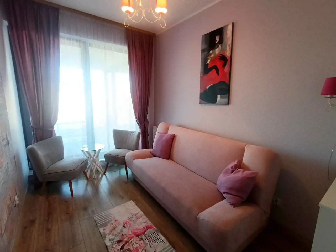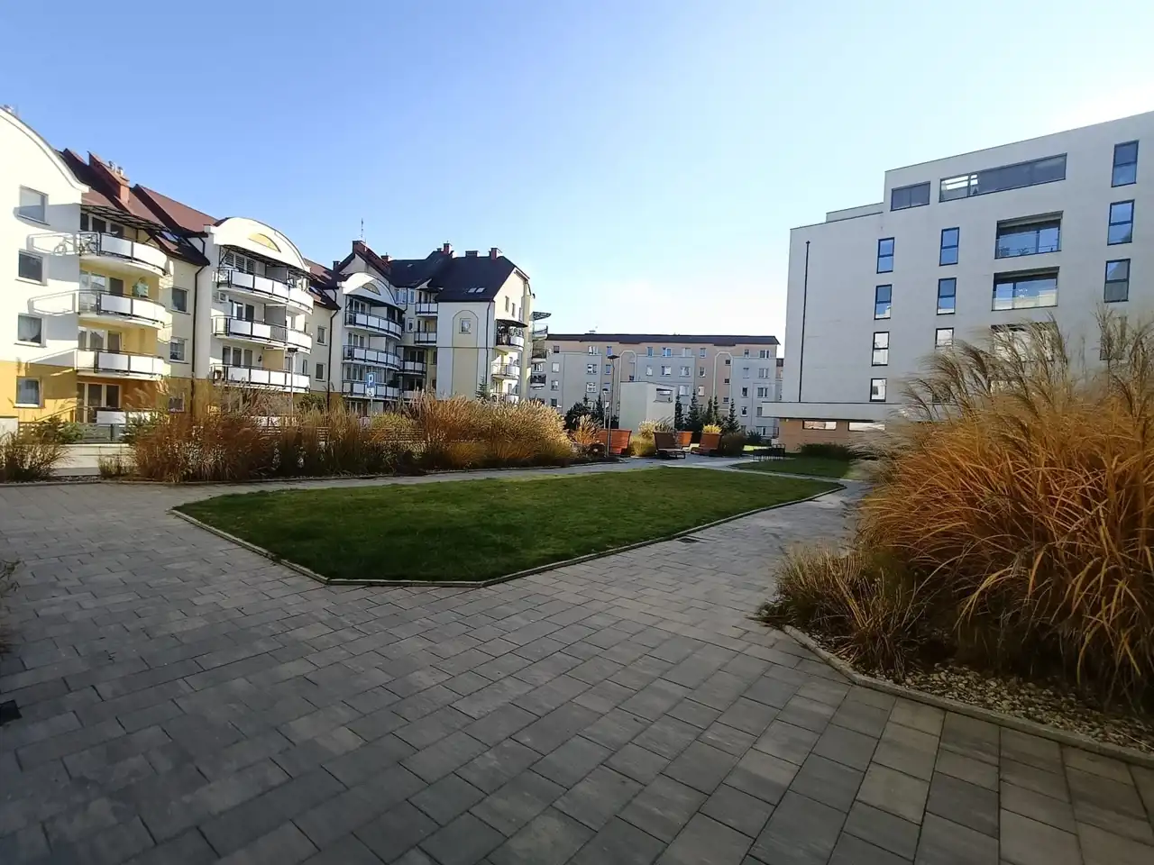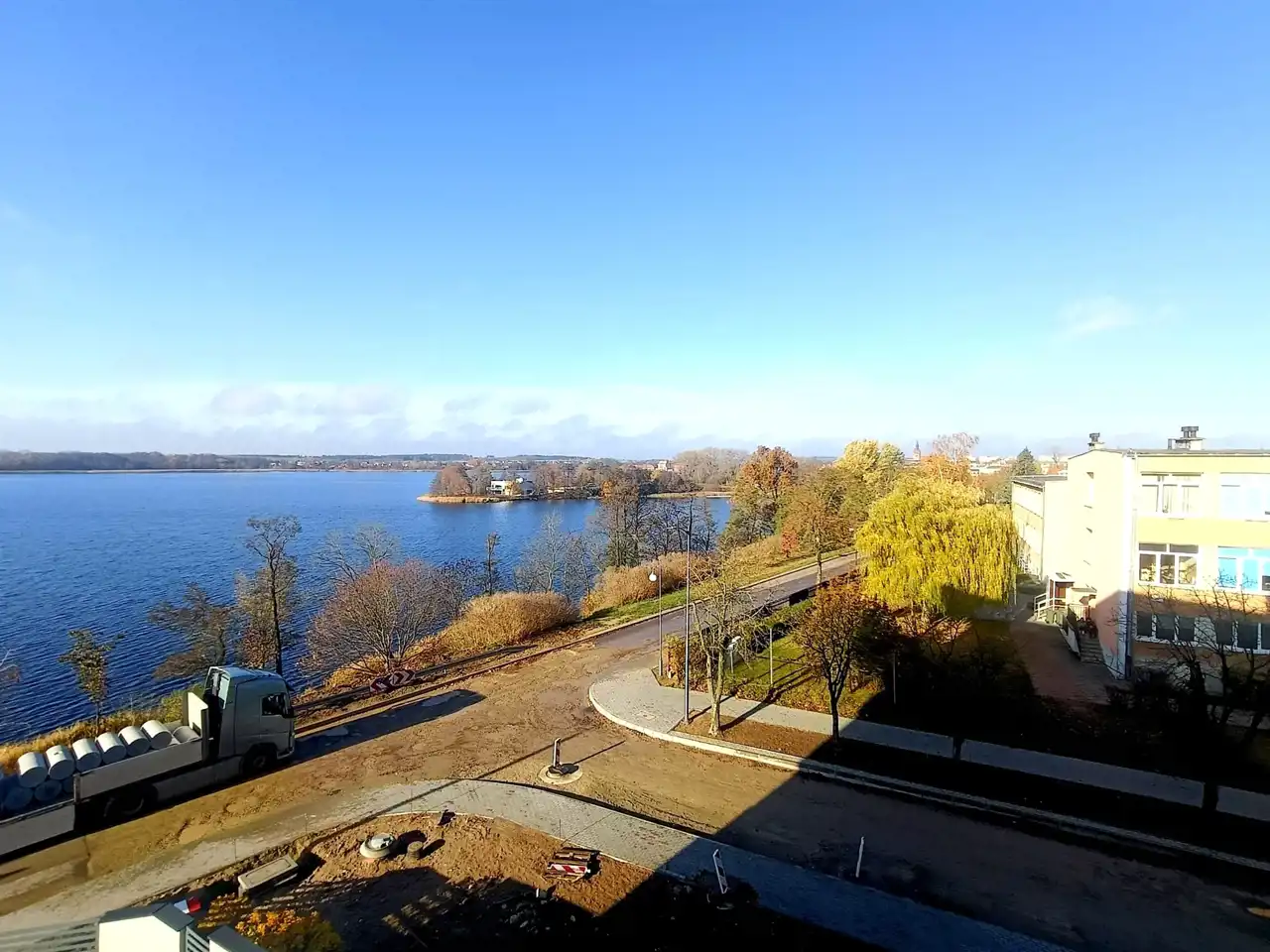 Mieszkanie znajduje się w prestiżowej lokalizacji, na zamykanym i zadbanym dziedzińcu, z bezpośrednim widokiem na jezioro. Apartament jest przestronny — posiada salon z aneksem kuchennym, dwie sypialnie, łazienkę oraz WC oddzielnie.