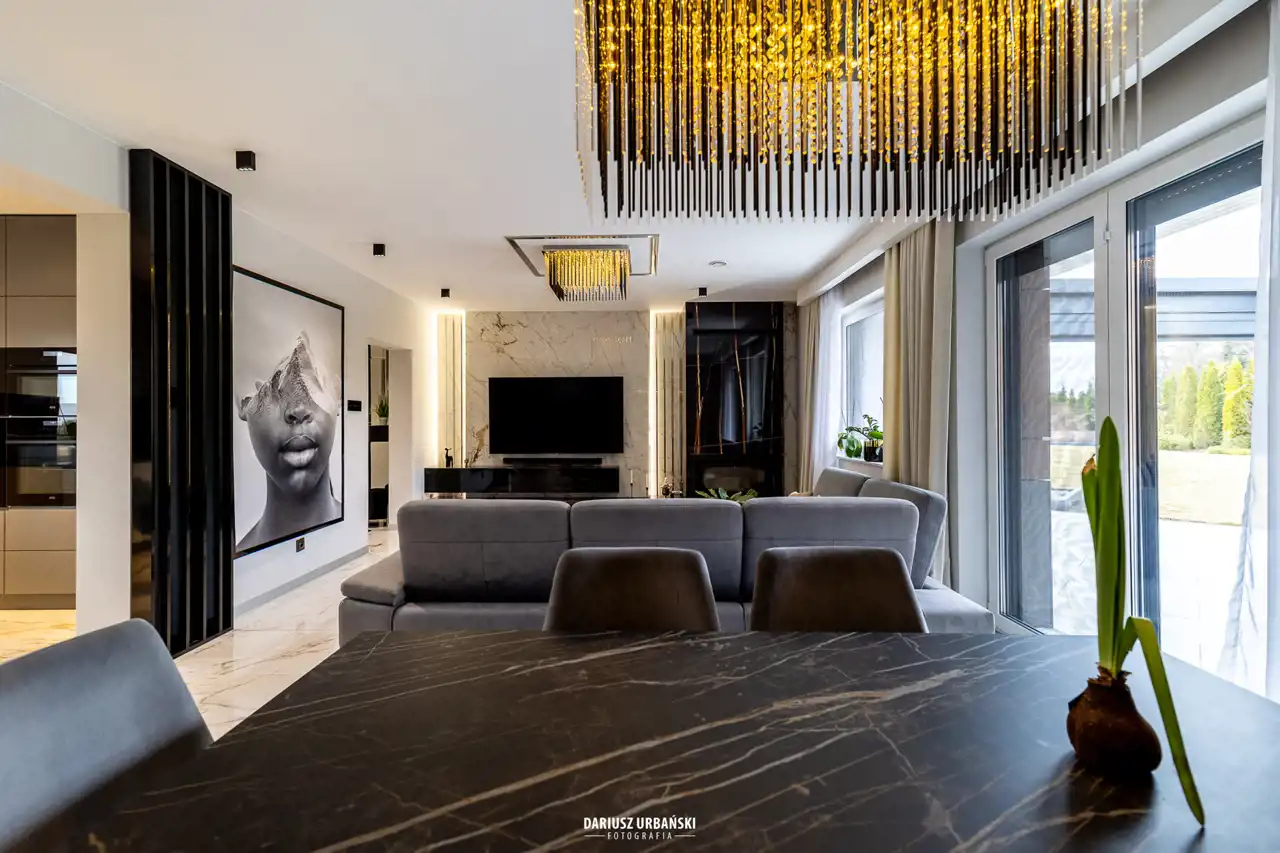 Nieruchomość gotowa do zamieszkania, aranżacja pomieszczeń czyni ten dom ciepłym, nowoczesnym oraz przyjemnym miejscem.