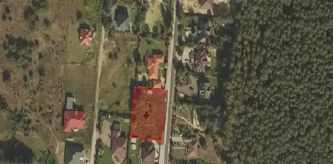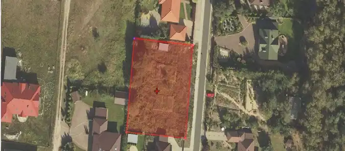 Działka jest płaska, ma kształt prostokąta o wymiarach 43,20m (front) x 33,10m . Posiada już solidne fundamenty pod budowę 2 domów w zabudowie bliźniaczej i jest częściowo ogrodzona.