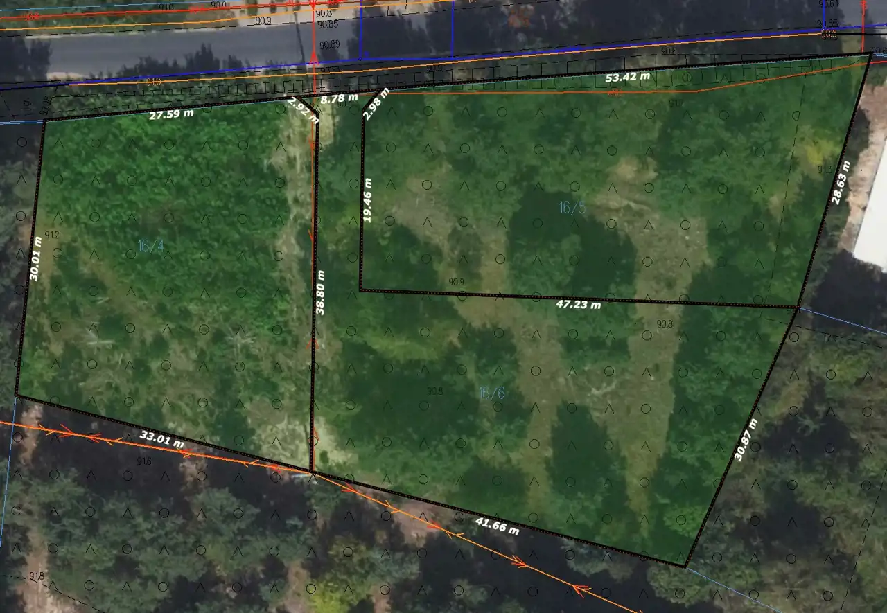 Nieruchomość gruntowa o powierzchni 3615 m2 podzielona na trzy działki o wielkości: 1090 m2
