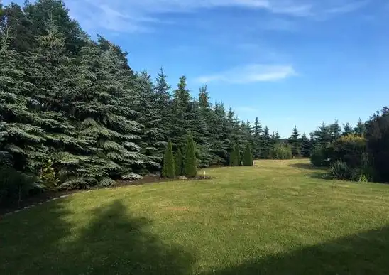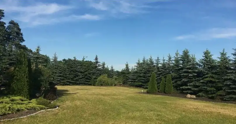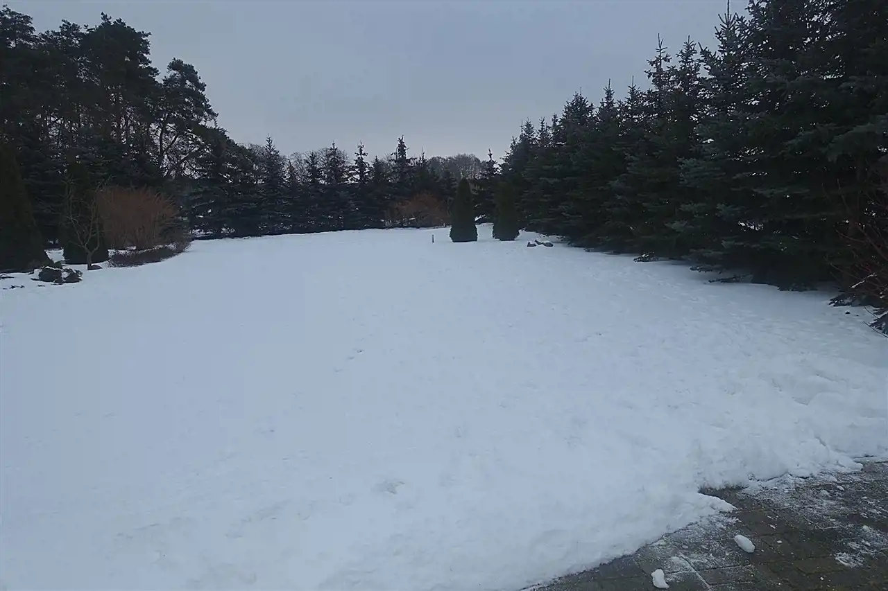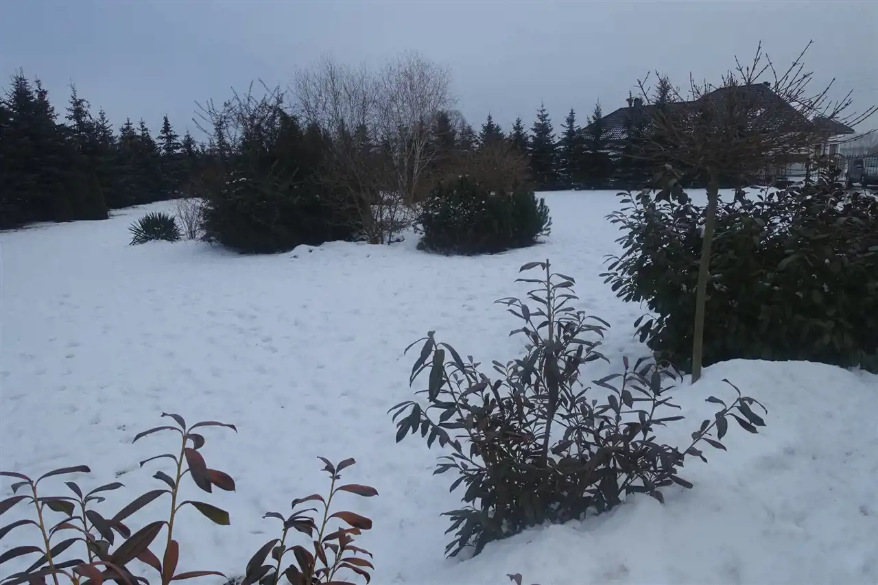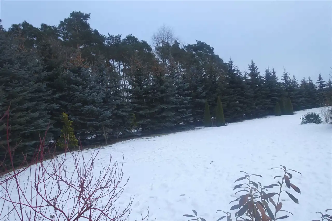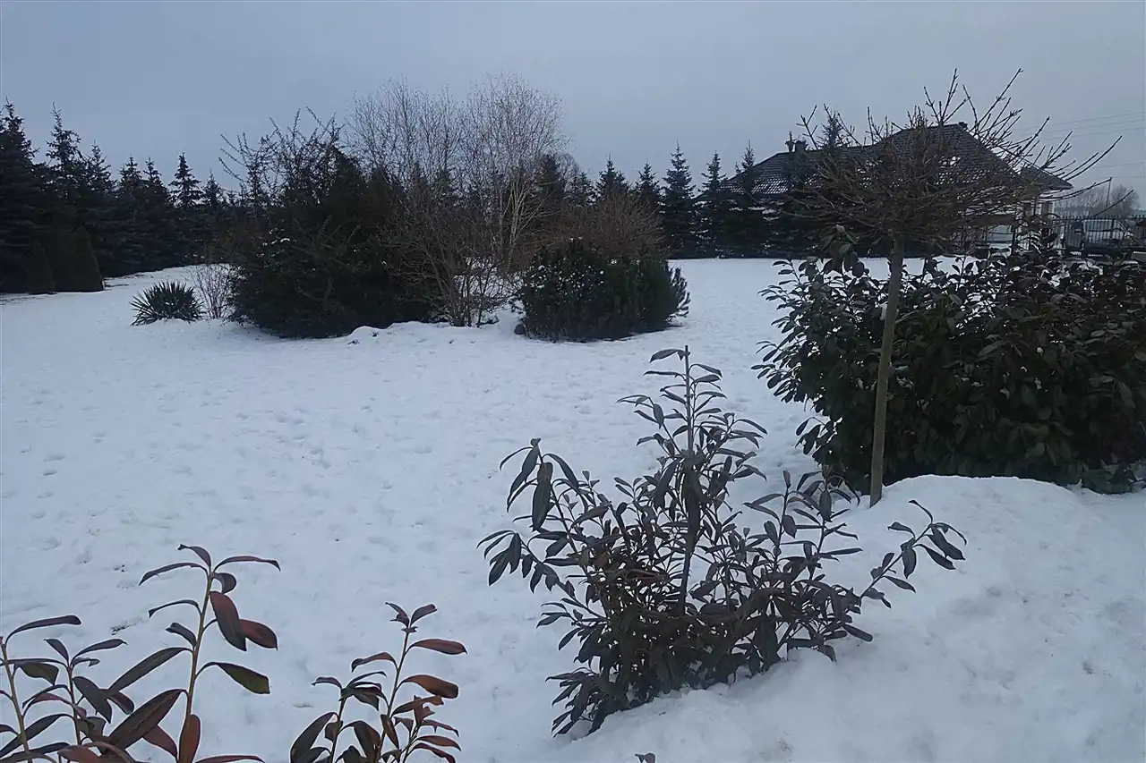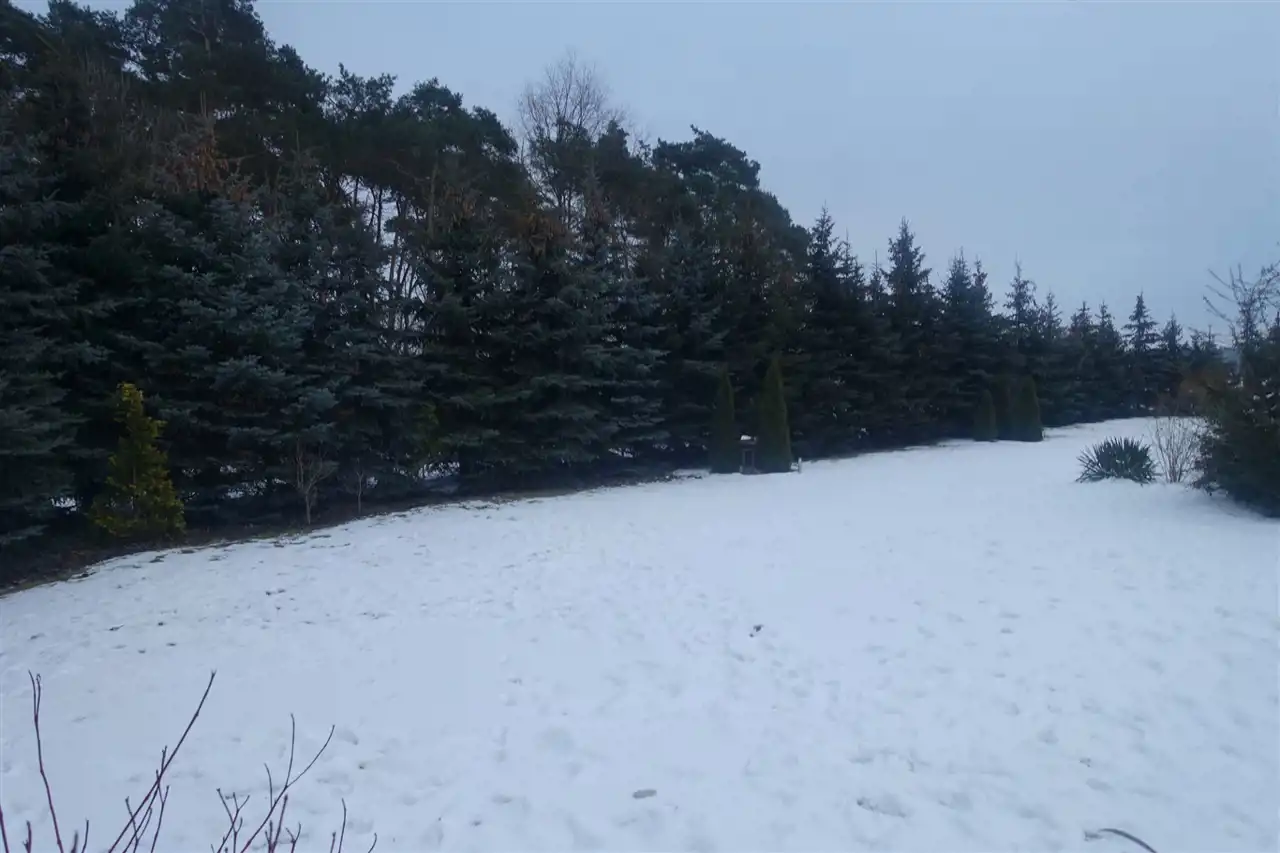 Nieruchomość została podzielona na 3 odrębne działki o powierzchni 551m2, 597m2 i 632m2. Całość ogrodzona jest siatką powlekaną o wysokości 180 cm, obsadzona gęstymi kilkumetrowymi świerkami. Na klombach występuje bujna roślinność , podsypana korą oraz kamieniem granitowym. Ponad to na działce zostało rozprowadzone nawadnianie ogrodu.