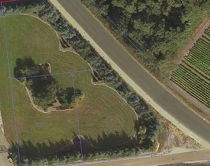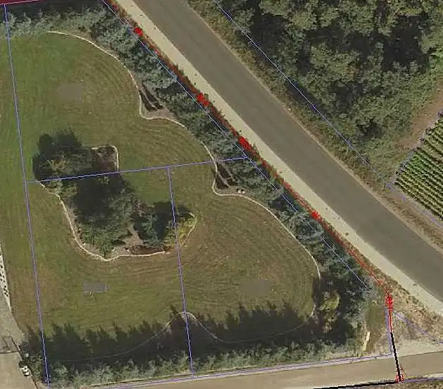 Działka jest płaska, ma kształt trapezu i jest częściowo ogrodzona.