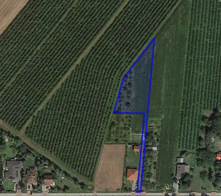 Działka jest płaska, na części ziemi znajduje się zadbany sad.