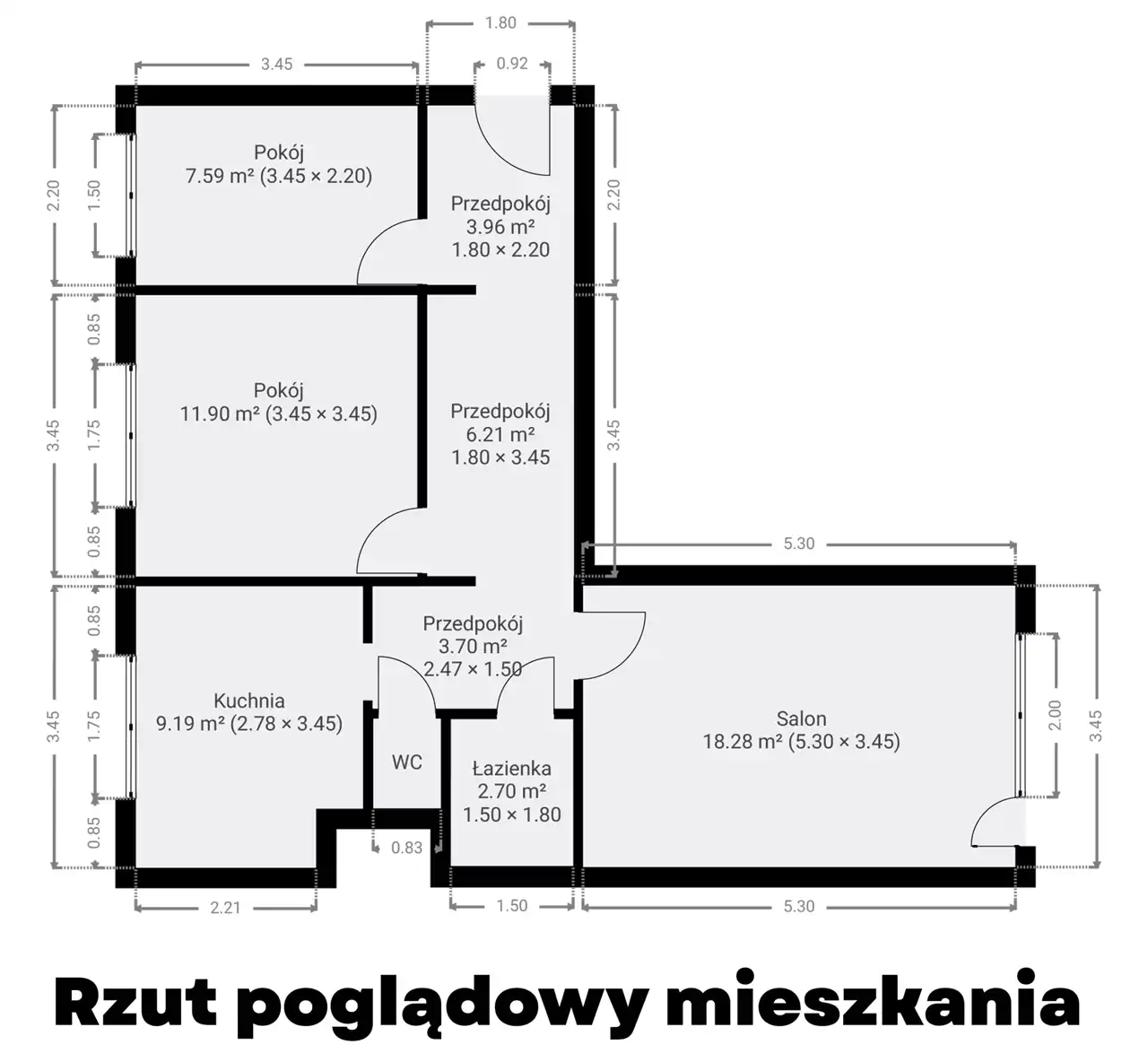 - Charakterystyka mieszkania 65.4 m2, 3 pokoje