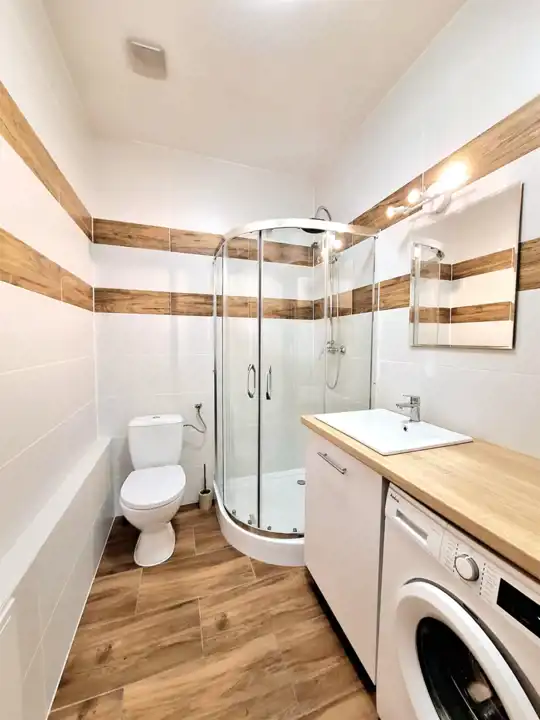 - łazienka około 4m z kabiną prysznicową, oraz meblami w zabudowie i pralką