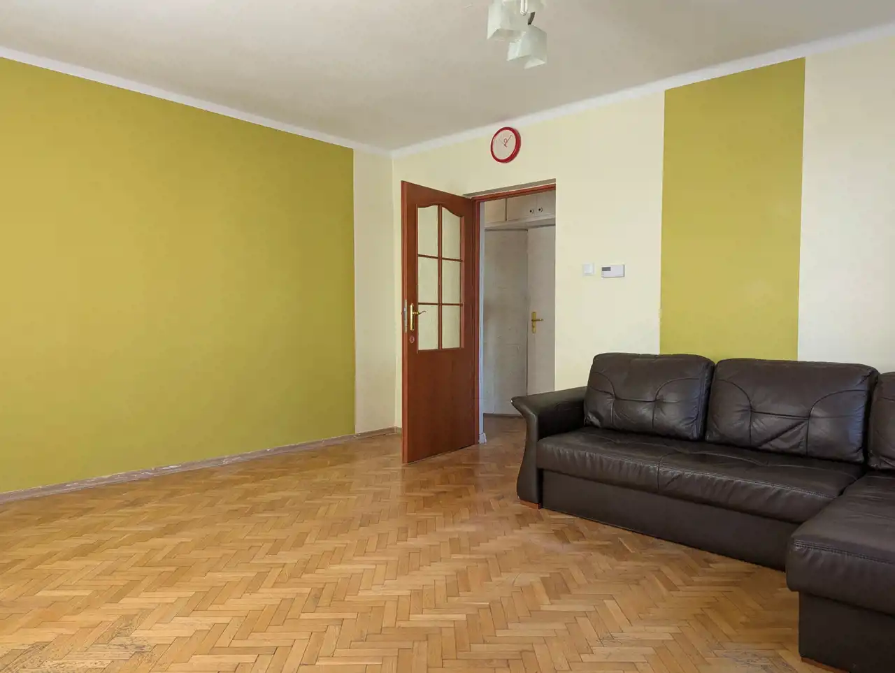 Duży pokój o powierzchni 19,43 mkw, mniejszy - 12,82 mkw, mini-pokoik, ewentualnie może być garderoba / spiżarnia - 3,74 mkw, kuchnia - 11,59 mkw, łazienka z WC, z oknem – 3,61 mkw, przedpokój - 4,15 mkw.