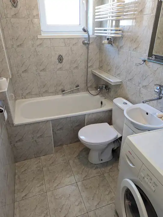 Okna PCW z roletami materiałowymi, z moskitierami, w pokojach na podłodze parkiet brzozowy, na ścianach i sufitach gładź, w przedpokoju korek, drzwi wejściowe antywłamaniowe, w cenie pozostaje zabudowa kuchni wraz z nową lodówką, zmywarką, kuchenką gazową 4-palnikową z piekarnikiem, ewentualnie z zamrażarką, pralka Bosch (6 kg) w łazience, duża kanapa narożna z ekoskóry w dużym pokoju, szafa narożna w mniejszym, szafa w stałej zabudowie i pawlacze w przedpokoju.