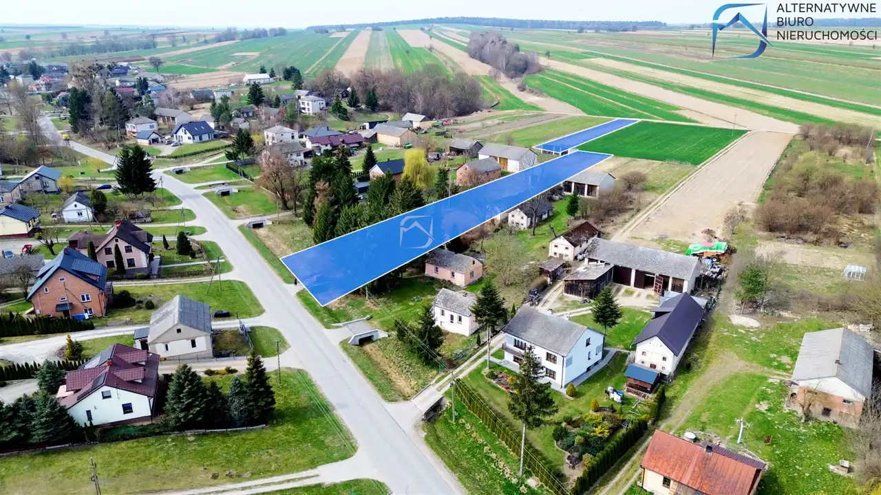 Prezentowany grunt o łącznej powierzchni 4282 m² składa się z trzech działek, tworząc przestronny i funkcjonalny teren o dużym potencjale aranżacyjnym. Nieruchomość usytuowana jest w pierwszej linii zabudowy, z bezpośrednim dostępem do asfaltowej drogi publicznej.