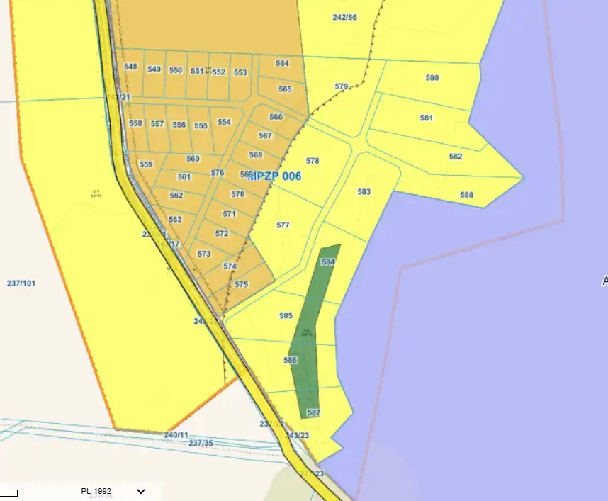 Część działek objęta jest Miejscowym Planem Zagospodarowania Przestrzennego o symbolu 13 R są to tereny rolne bez prawa zabudowy do 100m od jeziora