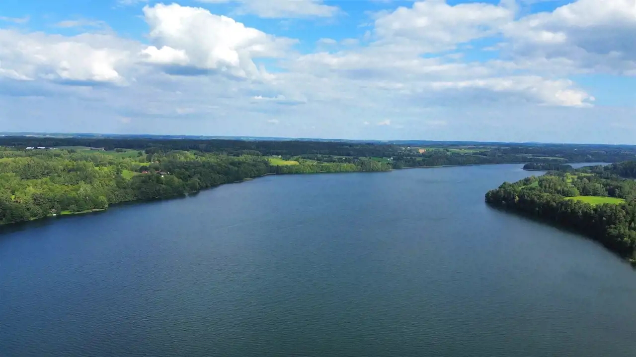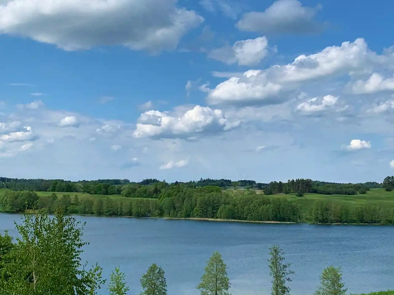 Od najbliższego jeziora około 150 m - możliwy widok na jezioro z ewentualnego piętra domu.