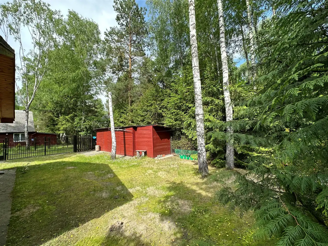 Dodatkowo, na działce znajduje się budynek gospodarczy, który może posłużyć do przechowywania narzędzi ogrodowych lub jako dodatkowa przestrzeń magazynowa.