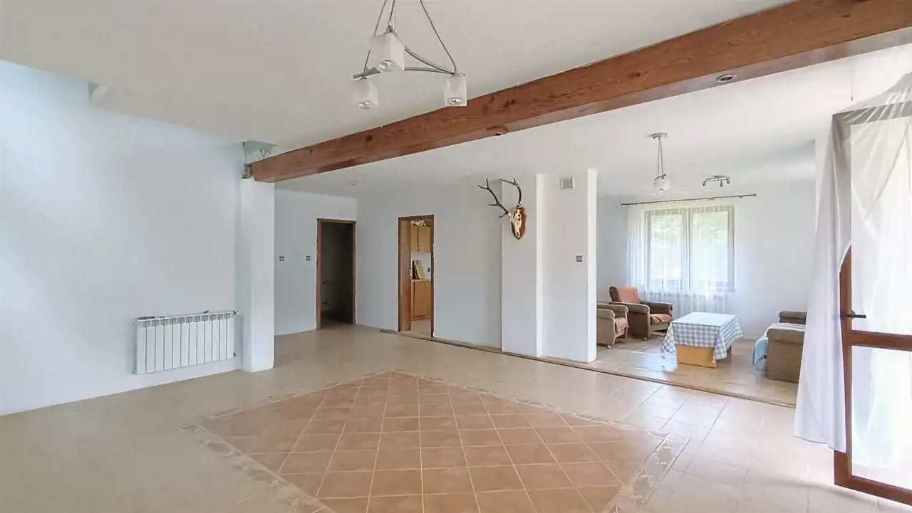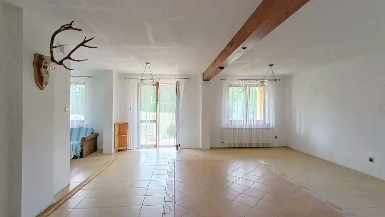 - 5 pomieszczeniami w tym kotłownia z piecem CO na drewno, pomieszczeniem na pralnie